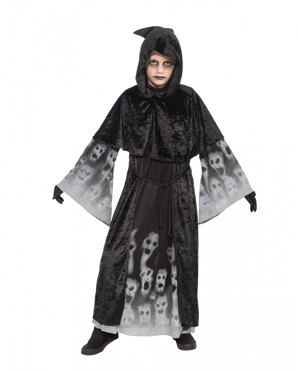 Forgotten Souls Kinderkostüm für Halloween und Fasching Sorge als unheimlicher Seelenfänger für Gänsehaut beim Trick or Treat Das Forgotten Souls Kinderkostüm ist eine geniale Verkleidung für die Gruselnacht. Düster und zu allen Schandtaten bereit machst du Halloween zu deiner Nacht. Als unheimlicher Geisterbeschwörer führst du die Bande aus Vampiren, Geistern und Skeletten an. Ihr sorgt mit euren schaurig schönen Kinderkostümen für fette Beute im Süßigkeiten Beutel und angstvolle Gesichter. Das wird ein Spaß! Im Forgotten Souls Kinderkostüm habt ihr das Outfit eines unheimlichen Seelenfängers, der ein Profi im Herumspuken ist. Und das Beste an diesem Halloween Kinderkostüm: Darunter kann man noch Strumpfhose, Leggings oder Hose und Pullover anziehen. Der Umhang mit dem Kapuzen Cape in tiefem Schwarz verbirgt alles. Zu Erkennen sind nur die verzweifelten Gesicher der gepeinigten Seelen, die an den weiten Ärmeln und in Höhe der Beine zu sehen sind. Lieferumfang: 1 x Forgotten Souls Kinderkostüm Farbe: Schwarz / Weiß Größe: M, L Material:100% Polyester Größe: S 4-6 Jahre M 8-10 Jahre L 12-14 Jahre Gewicht: ca. 17-19 kg ca. bis 28 kg ca. bis 45 kg Größe: ca. 99-114 cm ca. 116-135 cm ca. bis 152 cm Achtung: Der Artikel ist ein Kostüm für Erwachsene und kein Spielzeug. Nicht für Kinder unter 3 Jahren geeignet. Kann Kleinteile enthalten, die verschluckt werden können – Erstickungsgefahr. Von Feuer und offenen Flammen fernhalten.