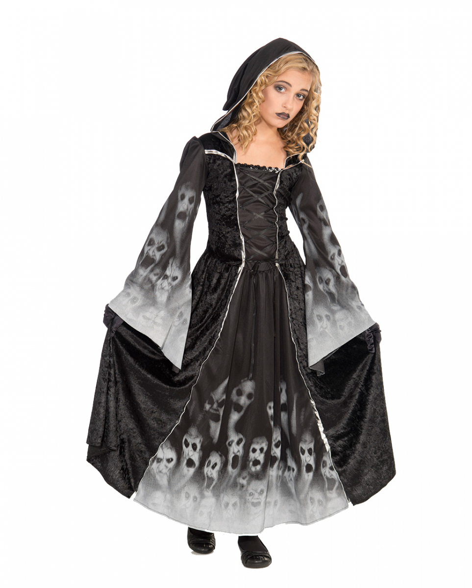 Forsaken Souls Mädchenkostüm für Halloween und Motto Party Elegantes Halloween Kinderkostüm für Mädchen Das Forsaken Souls Mädchenkostüm ist ein echter Hingucker für deine erste Halloween Party. Als unheimliche Geisterfängerin trägst du die Seelen vieler unglücklicher Wesen auf deinem wunderschönen Kleid. Düster und anmutig ziehst du beim Trick or Treat von Haus zu Haus, auf der Suche nach noch mehr Seelen. Die einzige Chance für deine Nachbarn, dir zu entkommen, besteht darin, dir ordentlich viele Süßigkeiten zu geben. Das (alp-)traumhaft schöne Forsaken Souls Mädchenkostüm verwandelt dich in ein gruseliges Wesen, deren dunkler Aura man sich nicht entziehen kann. Das elegante Kleid mit seinem schwarzen Rock, dem Oberteil in Korsagenoptik und den weiten Trompetenärmeln versprüht den gefährlichen Charme einer zauberhaften kleinen Seelenfängerin. Die vielen geisterhaften Fratzen, die auf dem Kleid abgebildet sind, zeugen von deinem Erfolg an Halloween. Lieferumfang: 1 x Forsaken Souls Mädchenkostüm Farbe: Schwarz / Weiß Größe: M, L Material: 100% Polyester Nicht für Kinder unter 3 Jahren geeignet. Kann Kleinteile enthalten, die verschluckt werden können – Erstickungsgefahr.