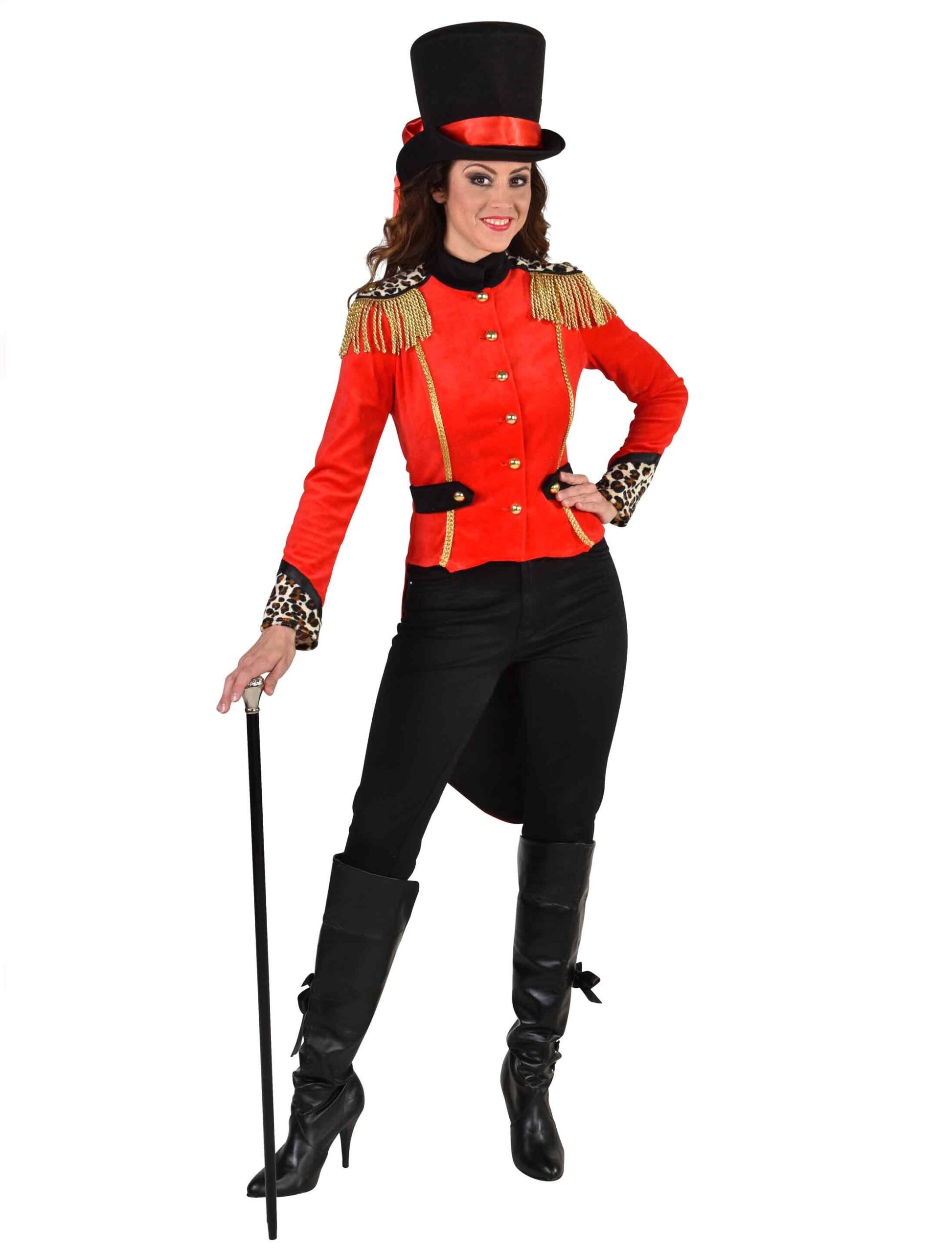 Mit diesem hübschen Dompteurin-Kostüm zähmst Du sogar den wildesten Löwen! Kein Wunder, denn wenn Du den figurbetonten Frack trägst, liegen Dir alle zu Füßen. Der Frack für Damen besteht aus einem roten Stoff und ist an den Schulterklappen und an den Ärmelsäumen mit hübschen Leoparden-Stoffen verziert. Die vielen goldenen Borten, Knöpfe und Fransen verwandeln das Oberteil in ein edles Kleidungsstück. Der lange Schnitt und die schwarze Schleife auf der Rückseite runden Deinen Auftritt als Dompteurin gekonnt ab. Wir sind gespannt, wen Du auf der nächsten Karnevalsparty alles zähmen wirst! Exklusiv Artikel.
