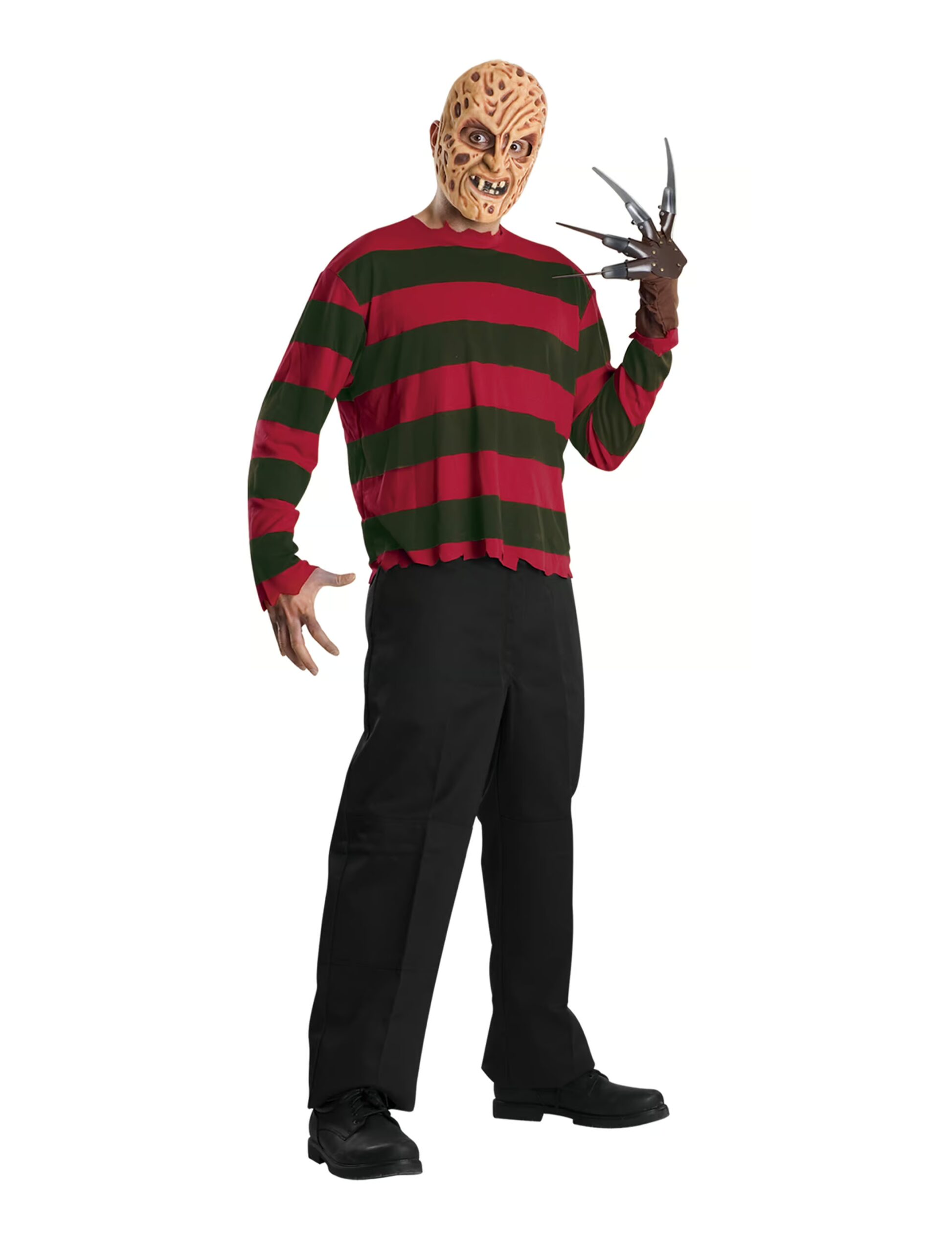Mit unserem Freddy Krüger Kostüm für Erwachsene wirst du zum Albtraum auf zwei Beinen – inspiriert von der Horror-Ikone aus den „A Nightmare on Elm Street“-Filmen. Das Set besteht aus dem klassischen gestreiften Shirt in Rot und Grün sowie der markanten Maske, die jedem sofort das Blut in den Adern gefrieren lässt. Mehr braucht es nicht, um den unverkennbaren Look von Freddy zu erschaffen. Ob Halloween-Party, Grusel-Event oder Karneval mit Schockfaktor – unser Freddy Krüger Kostüm ist genau das Richtige für alle, die Schrecken und Gänsehaut mit Stil verbreiten wollen!