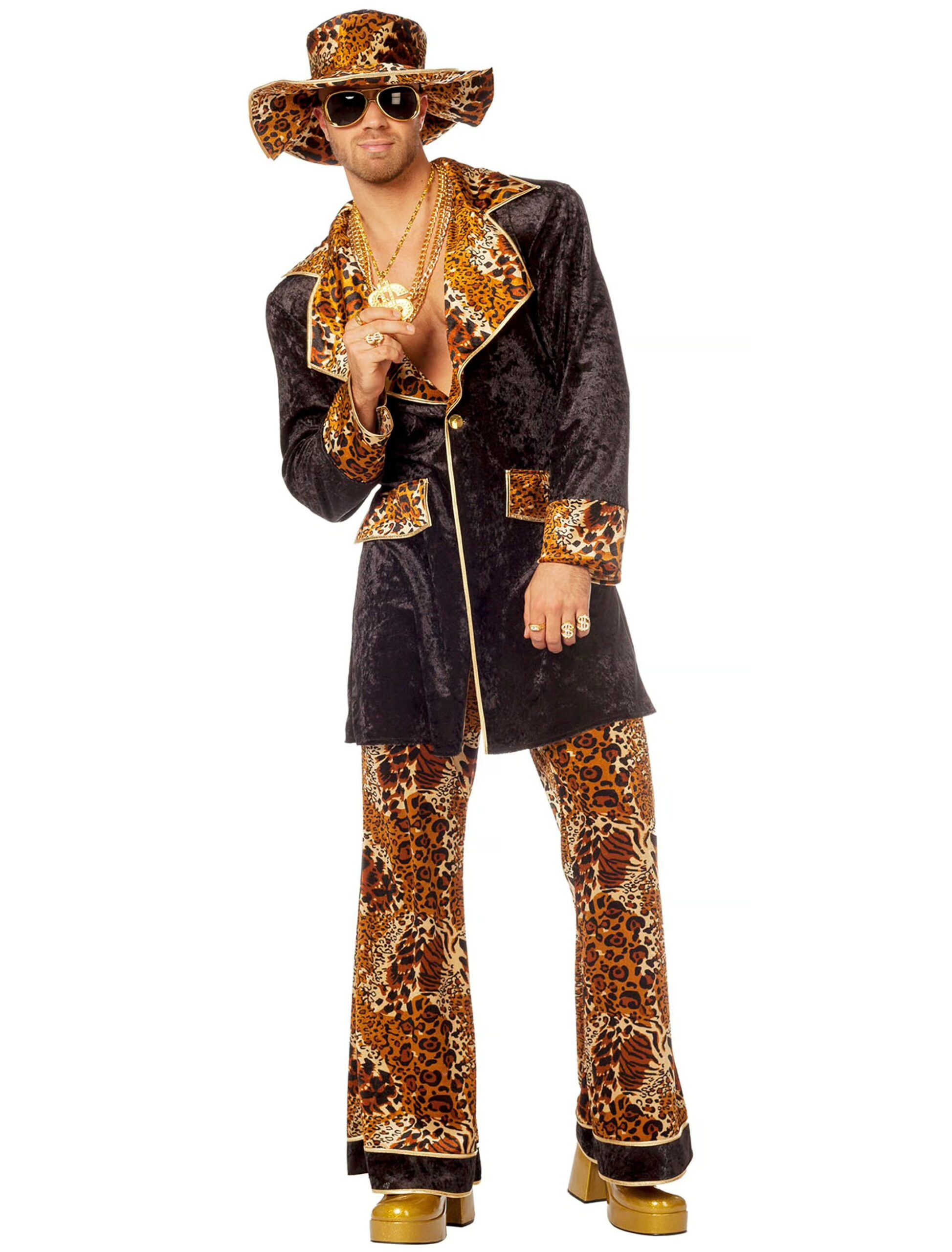 Du möchtest als coolster Gangster in der Hood beim Feiern durchstarten? Dann hole Dir jetzt unser schrilles Gangster Kostüm mit Hut. Alle drei Teile des Outfits haben ein cooles Leo Muster Design und machen Dich zum König in Deinem Viertel. Dabei dürfen natürlich eine Sonnenbrille und ein Goldkettchen mit Dollarzeichen nicht fehlen. Deine Finger hingegen kannst Du mit goldenen Ringen verzieren und beim Feiern mit einem schicken Cabrio vorfahren. Du wirst sehen, wie schnell sich die Frauen nach Dir umdrehen werden. Auch auf der Tanzfläche kann Dir damit keiner das Wasser reichen. Bad Taste.