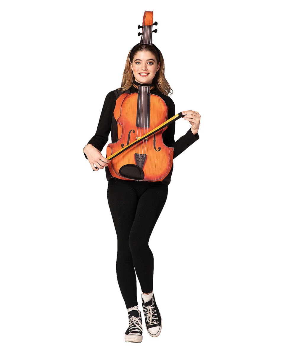 Geige Kostüme mit Sound, Haarreif und Geigenbogen Musikalische Verkleidung, um an Fasching die erste Geige zu spielen Schlüpfe in die Rolle des virtuosen Star-Geigers und werde zum strahlenden Mittelpunkt jeder Feier! Dieses innovative Geige-Kostüm verzaubert nicht nur mit seinem authentischen Design, sondern fasziniert auch durch echte Violinenklänge. Ein Hit auf jeder Party! Musikalischer Spaß mit Kostüm und Soundeffekt. Das dreiteilige Geigen-Kostüm besteht aus einem geigenförmigen Umhang (vorne bedruckt), einem Haarreif als Griffstück und einem passenden Geigenbogen. Das besondere Extra: Ein integrierter Soundchip lässt auf Knopfdruck Geigenklänge ertönen. Lieferumfang: 1 x Geige Kostüme mit Sound, Haarreif und Geigenbogen Inhalt: 1 x Geige als Umhang, 1 x Haarreif, 1 x Bogen Farbe: Braun, Beige, Schwarz Größe: One Size Erwachsenengröße Material: 100% Polyester, Harrreif und Bogen aus Kunststoff Das dreiteilige Geige-Kostüm besitzt einen Soundchip, der Geigenmusik ertönen lässt Der Umhang stellt den Geigenkörper dar, ein Haarreif dient bei dem Kostüm als Griffstück Ein extra mitgelieferter Stab als Geigenbogen perfektioniert dein Musikinstrument Kostüm Achtung: Schwarzer Onsie / Jumpsuit / Overall nicht inkl. Kostüm ist nur auf der Vorderseite bedruckt