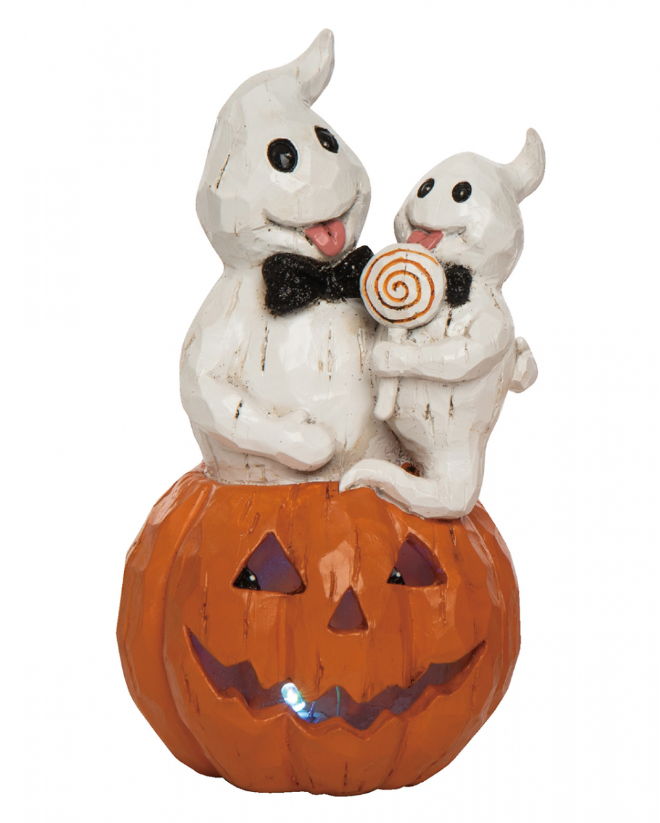 Geister Papa mit Sohn und Lolli auf Leuchtkürbis 22cm Hol dir die kinderfreundliche Halloween Deko Figur mit leuchtendem Kürbis als niedliche Tischdeko Die Gespenster haben beim Trick or Treat einen leckeren Lutscher ergattert und lecken fröhlich daran herum. Hol dir diese stimmungsvolle Halloween Deko Figur, wenn du Kinder hast. Die Kids werden die Geister Papa mit Sohn und Lolli auf Leuchtkürbis lieben. Der Geister Papa mit Sohn und Lolli auf Leuchtkürbis verschönert Fensterbänke, Tische und Regale. Die Halloween Deko Figur wurde aus hochwertigem Polyresin gegossen und bemalt. Wenn ihr Batterien einlegt, habt ihr eine Halloween Tischdeko mit Beleuchtung. Lieferumfang: 1 x Geister mit Lolli auf Leuchtkürbis 22cm Farbe: Orange, Weiß, Schwarz, Rosa Größe: ca. 13 x 11 x 22 cm Material: Polyresin (Kunststein), Elektronik Niedliche Geister auf leuchtendem Halloween Kürbis Kinderfreundliche Halloween Deko Benötigte Batterien nicht enthalten Nicht für Kinder unter 3 Jahren geeignet. Kann Kleinteile enthalten, die verschluckt werden können – Erstickungsgefahr. Von Feuer und offenen Flammen fernhalten.