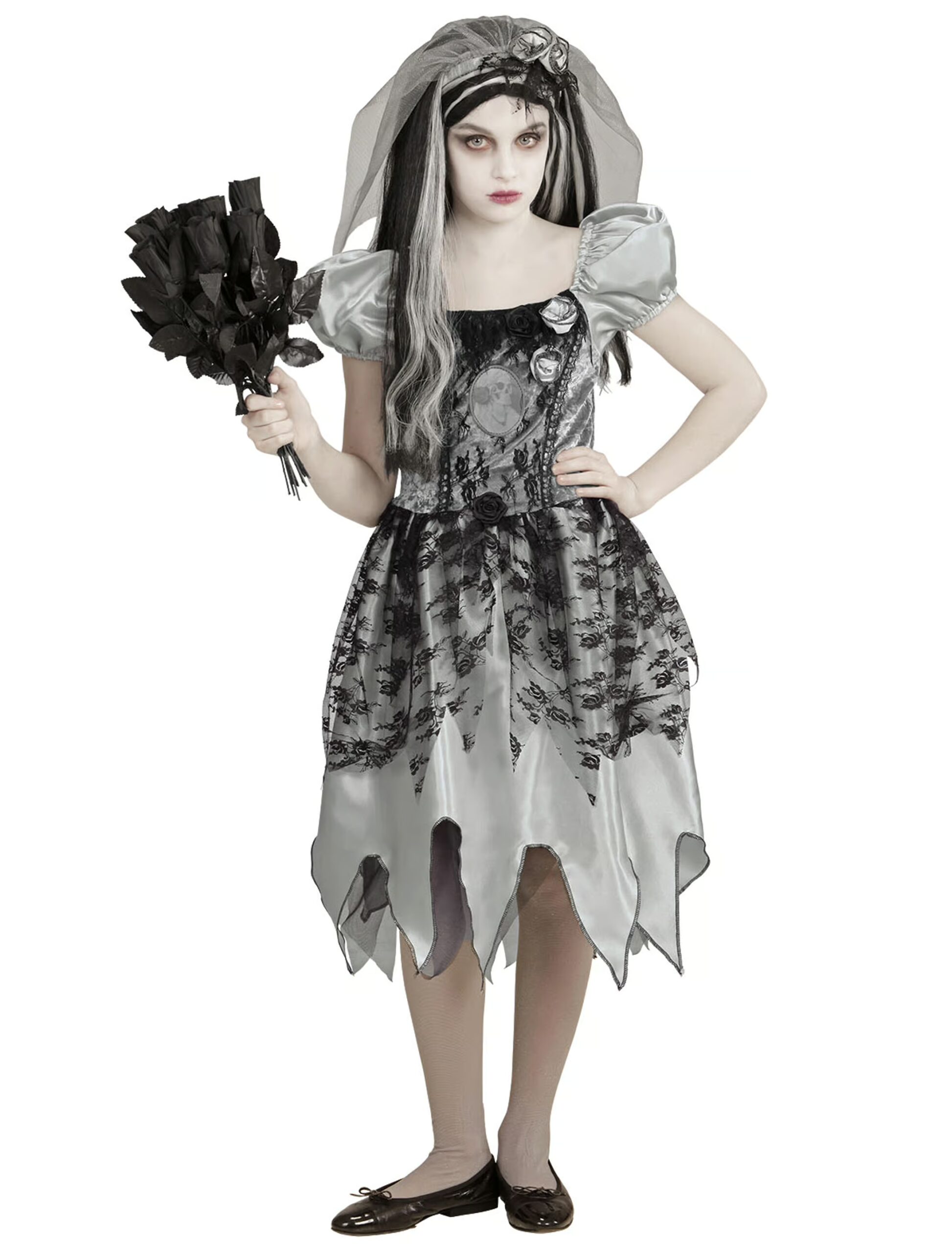 Geisterbraut Kinder 2-tlg. grau 128, ideal für Karneval & Fasching