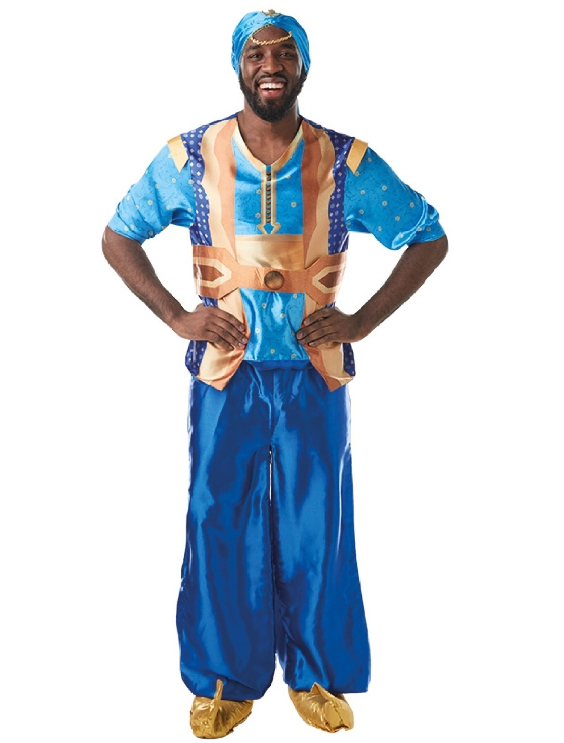 Komme aus der Wunderlampe hervor und erfülle an Karneval Deinem Meister Aladdin oder der süßen Prinzessin Jasmin drei Wünsche mit unserem schicken Genie Kostüm. Das Outfit aus 1001er Nacht lässt sich in zwei Größen bei uns im Shop bestellen und eignet sich für jede Faschingsfete mit Deinen Freunden. Bestehend aus Oberteil, Hose und Hut in den Farben Gold und Blau lässt sich die Verkleidung aus Polyester sehr angenehm tragen. Zusätzlich findest Du bei uns im Shop viele Accessoires, die zu diesem Outfit passen, so dass Du es prima ergänzen kannst. Viel Freude beim Stöbern in unserem Sortiment! Bei diesem Kostüm handelt es sich um offiziellen DISNEY Merchandise!