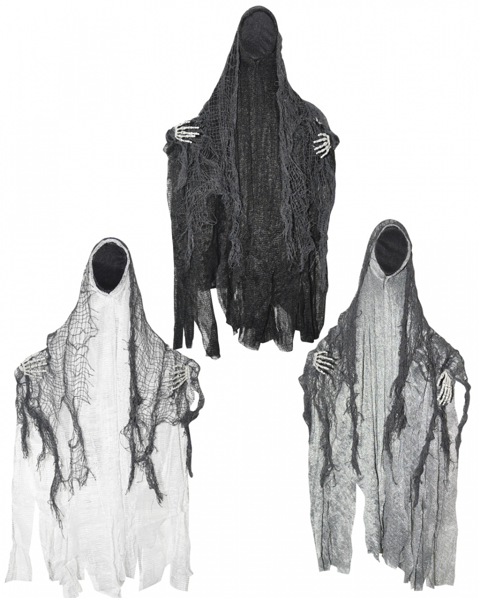 Unheimlicher, Gesichtsloser Geist Hängefigur 54cm als Halloween Deko Schaurige Reaper Figur mit biegsamen Armen zum Aufhängen Mit der Gesichtsloser Geist Hängefigur holst du dir an Halloween einen Klassiker ins Haus. Die Reaper Hängefigur sorgt für schauriges Flair in der Gruselnacht. Als unheimliche Gestalt mit finsteren Absichten hängt der Sensenmann von der Decke. Er ist bereit, sich auf seine Auserwählten zu stürzen. Aber erst mal sorgt er für eine anständig dekorierte Bude. Damit die Höllenparty bei dir genauso fett wird wie in der Unterwelt. Die Gesichtsloser Geist Hängefigur ist die ideale Deko für den Trick or Treat. Der Reaper hat sich extra hübsch gemacht. Das Fetzengewand flattert in der Gruselnacht im Wind. Die Halloween Hängefigur ist etwa 54 cm lang. Das Fetzenkleid der Reaper Deko Figur ist entweder Schwarz, Weiß oder Grau. Aus technischen Gründen ist keine spezifische Farbauswahl möglich. Bestelle am besten mehrere Figuren, so ist die Chance alle Farben zu erhalten groß. Lieferumfang: 1 x Gesichtsloser Sensenman Hängefigur 54cm Inhalt: 1 Stück Farbe: Schwarz, Grau, Weiß Größe: ca. 54 x 45 x 5 cm Material: Polyester, Kunststoff, Draht Gesichtloser Sensenmann mit biegsamen Armen Stimmungsvolle Halloween Deko zum Aufhängen Spezifische Farbauswahl nicht möglich Der Artikel ist kein Spielzeug. Nicht für Kinder unter 3 Jahren geeignet. Kann Kleinteile enthalten, die verschluckt werden können – Erstickungsgefahr. Von Feuer und offenen Flammen fernhalten.