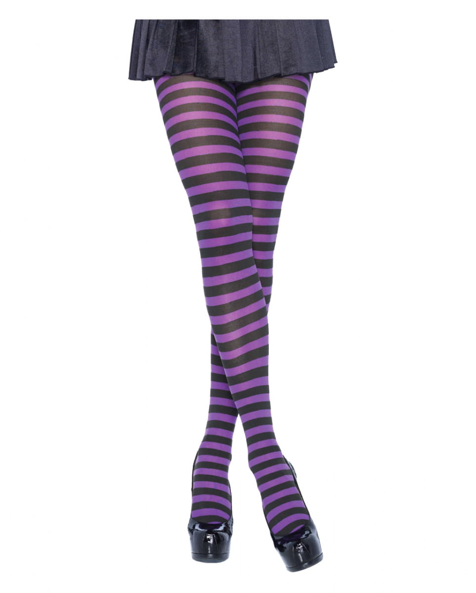 Schwarz-lila gestreifte Strumpfhose für Hexen und Vampir Kostüme Sexy Ringelstrümpfe machen Deine Beine zum Highlight der Halloween Party! Mit der Schwarz-lila gestreifte Strumpfhose machst Du Deine Beine auf der Halloween Party zum extravaganten Blickfang. Und auch wenn Du auf dem Besen in Richtung Walpurgisnacht reitest, sieht man als Erstes Deine geringelten Strümpfe, die froh umherzappeln. Ob als Hexe, Vampir oder frecher Gothik Punk, dieses sexy Kostüm Accessoire ist bei jeder Verkleidung das i-Tüpfelchen. Die Schwarz-lila gestreifte Strumpfhose ist durch die hochwertige Mischung aus 49% Nylon und 51% Polyester ein robustes Accessoire, das Dir an Halloween und Fasching viel Freude bereitet. Die knalligen Streifen in Lila wechseln sich mit den düsteren schwarzen Streifen ab. Damit ist die Strumpfhose das ideale Mix und Match Kostüm für Deinen Halloween Auftritt. Lieferumfang: 1 x Gestreifte Strumpfhose schwarz-lila Farbe: Schwarz/Lila Größe: One Size für Damen Material: 49% Nylon, 51% Polyester sexy Kostüm Accessoires für Halloween Rock und Schuhe nicht enthalten! 70 DEN Der Artikel ist ein Kostümzubehör für Erwachsene. Von Feuer und offenen Flammen fernhalten.