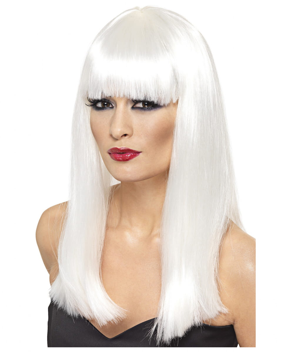 70er Jahre Perücke weiß Glänzende Damen Perücke für ein schillerndes Disco Styling Die 70er Jahre Perücke ist weiß glänzend und hat einen geraden Pony. Lieferumfang: 1 x 70er Jahre Perücke Perücke Farbe: weiß Länge: 45 cm Material: 100% Kunsthaar