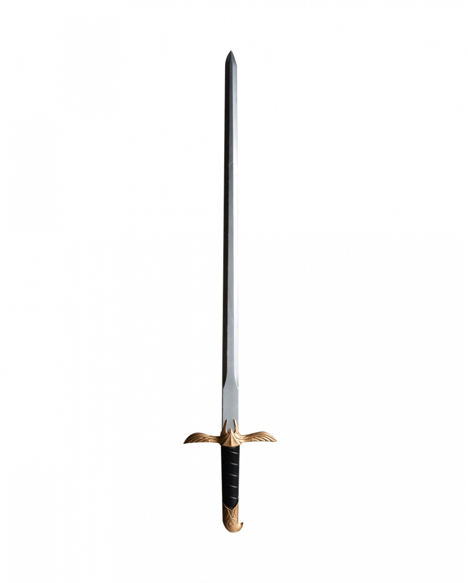 Goldenes Schaumstoffschwert als Kostüm Accessoire Kostüm-Waffe aus weichem Material Kreuze die Klingen mit deinen Kontrahenten mit unserem goldenen Schaumstoffschwert als Kostüm Accessoire! Die Kostüm-Waffe in edler Optik gibt dich an Halloween, Fasching und auf Mottopartys sofort als meisterlichen Schwertkämpfer zu erkennen und ist dank des verwendeten Materials völlig ungefährlich. Das goldene Schaumstoffschwert als Kostüm Accessoire weist eine Länge von insgesamt ca. 87 cm auf. Die spitz zulaufende Schneide der Kostüm-Waffe ist ähnlich wie bei einem Katana leicht gekrümmt und sieht dank der silbernen Farbgebung edel aus. Dieser Effekt wird durch den goldenen Griff des Halloween-Kostümaccessoires noch unterstrichen. Verschlungene Symbole schmücken sowohl den Griff des Fantasy-Schwertes, als auch dessen Klinge. Lieferumfang: 1x Goldenes Schaumstoffschwert als Kostüm Accessoire Farbe: Silber / Gold Größe: ca. 87cm Material: Schaumstoff Nicht für Kinder unter 3 Jahren geeignet. Kann Kleinteile enthalten, die verschluckt werden können – Erstickungsgefahr. Von Feuer und offenen Flammen fernhalten.