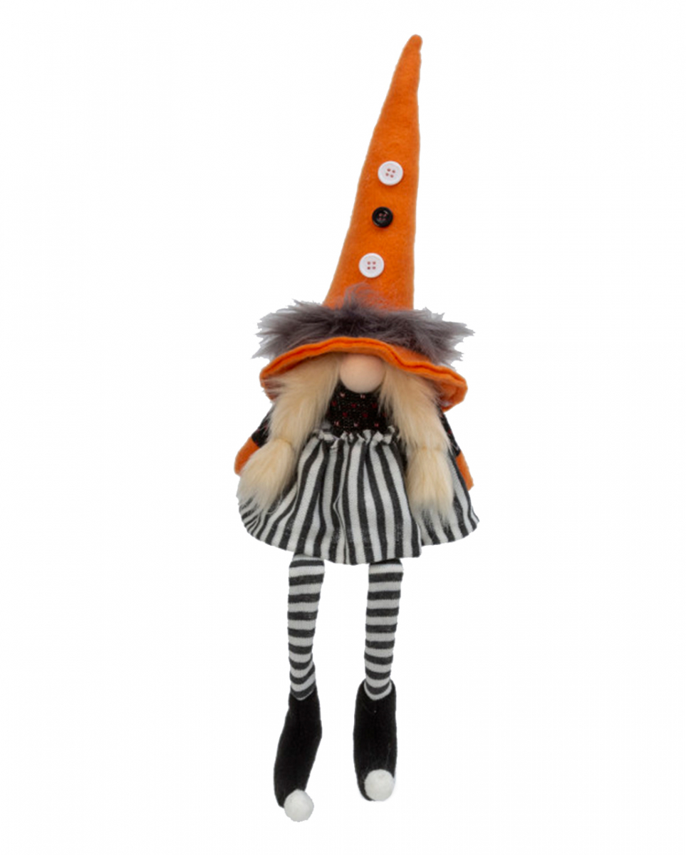 Großer weiblicher Hexen Gnom als Kantenhocker 55cm Weiblicher Zwerg mit Spitzhut und Zöpfen als kinderfreundliche Halloween Dekoration Der große weibliche Hexen Gnom als Kantenhocker ist eine bezaubernde Lady, die angenehmes Gruselnacht Flair beschert. Holt euch den süßen Halloween Zwerg, um eine kinderfreundliche Gruselnacht Deko zu haben, die durch Charme und Knollennase verzaubert. Neben dem schicken Hexenhut, trägt der große weibliche Hexen Gnom als Kantenhocker geringelte Strümpfe und schwarze Schuhe mit lustigen weißen Bommeln darauf. Aus ihrem dichten Haar lugt eine witzige runde Knollennase heraus. Lieferumfang: 1 x Große Hexen Gnom Frau als Kantenhocker 55cm Farbe: Orange, Schwarz, Beige, Weiß, Grau, Rot Größe: ca. 55 cm Material: Polyester Deko für Regale, Stufen und Bänke Kinderfreundliche Halloween Deko Der Artikel ist ein Deko Artikel und kein Spielzeug. Nicht für Kinder unter 3 Jahren geeignet. Kann Kleinteile enthalten, die verschluckt werden können – Erstickungsgefahr. Von Feuer und offenen Flammen fernhalten.