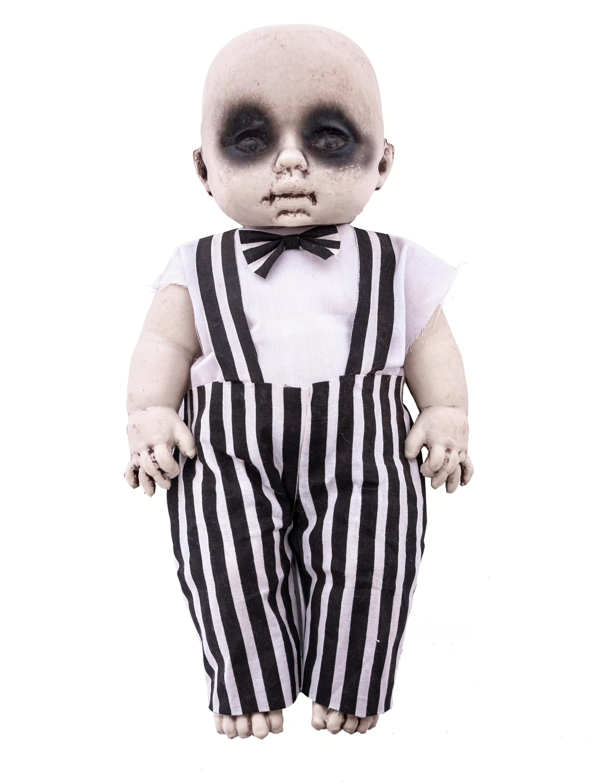 Mit der Halloween Deko, der Jungen Babypuppe, bekommt Deine Familie gruseligen Zuwachs. Egal auf welcher Halloween Party, Deine Jungen Babypuppe wird im Mittelpunkt stehen und allen Partygästen ein schauriges Gruseln bereiten. Die Puppe ist circa 30 cm groß und hat bewegliche Arme und Beine. So wird Deine Party Deko garantiert zum Gruselhit!