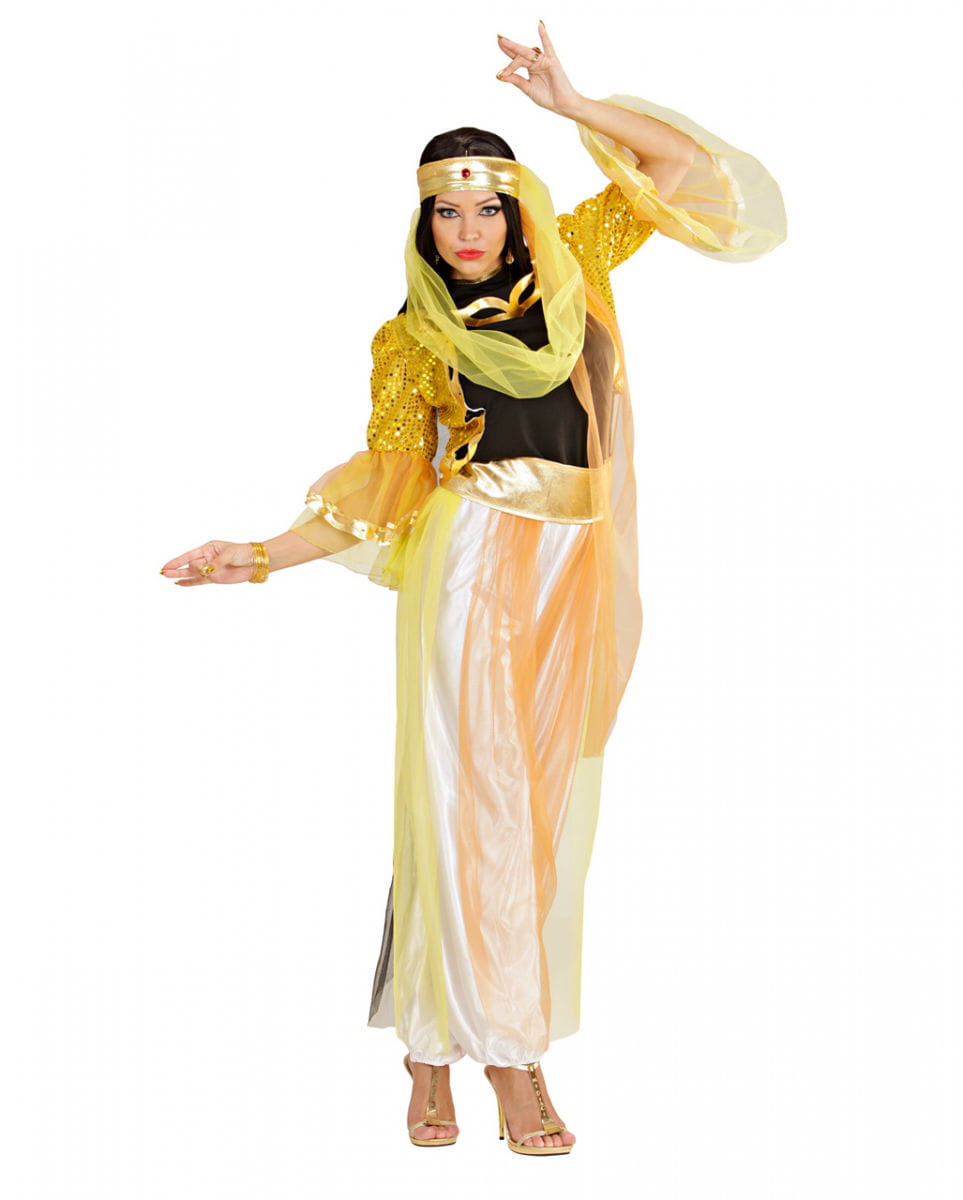 Harems Tänzerin Kostüm S Wunderschönes Kostüm im orientalischen Märchen Stil Werde mit dem Kostüm einer Haremsdame zur zauberhaften Bauchtänzerin aus dem Märchen 1001 Nacht. Mit unserem orientalisch Kostüm wirst du zur geheimnisvollen Haremsdame. Das klassische Kostüm einer Bauchtänzerinnen ist ein echter Blickfang mit vielen Details, das dich zur erotischen und eleganten Prinzessin einer orientalischen Nacht werden lässt. Das orientalische Haremstänzerin Kostüm besteht aus dem schwarzen Top mit goldenem Symbol, der gelb goldenen Pailletten Weste, der weißen Hose mit gelben Schleiern sowie dem goldenen Gürtel und dem Kopfteil mit Schleier. Im Lieferumfang enthalten: Oberteil, Weste, Hose, Gürtel, Schleier Schmuck und Schuhe nicht inkl! Größe: S, entspricht Gr. 34-36 Material: 100% Polyester Größe XS 32 S 34/36 M 38/40 L 42/44 XL 46/48 XXL 50/52 Der Artikel ist ein Kostüm für Erwachsene und kein Spielzeug. Nicht für Kinder unter 3 Jahren geeignet. Enthält Kleinteile die verschluckt werden können. Es besteht dadurch Erstickungsgefahr. Von Feuer und Flamme fernhalten.