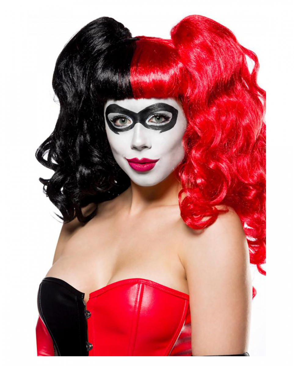 Schwarz-Rote Harlequin Perücke mit Zöpfen zum Klammern Vielseitig verwendbare Cosplay Lockenperücke mit Zöpfen Äußerst wandelbare Harlequin Perücke mit Zöpfen zum Klammern um sich schnell die verschiedensten Frisuren zu zaubern. Die vielseitig einsetzbare Langhaarperücke mit Locken lässt sich für verschiedenste Charaktere benutzen. Die wandelbare Harlequin Perücke ist eine Langhaarperücke mit Pony und leichten Locken, diese besitzt zwei Zöpfe, die sich mit Klammern an der Perücke befestigen lassen, so kann diese mit oder ohne Zöpfe getragen werden. Ein eingearbeitetes Netz und Stretchbänder sorgen für einen guten Halt der Perücke. Für den professionellen Einsatz ist es bei Langhaarperücken zusätzlich ratsam, einen Perückenstrumpf zu tragen. Lieferumfang: 1 x Schwarz-Rote Harlequin Perücke mit Zöpfen zum Klammern Farbe: Schwarz, Rot Größe: Langhaarperücke Material: 100% Polyester wandelbare Langhaarperücke mit Pony inklusive variabel platzierbaren Zopfklammern eingearbeitetes Netz Stretchbänder für einen guten Halt