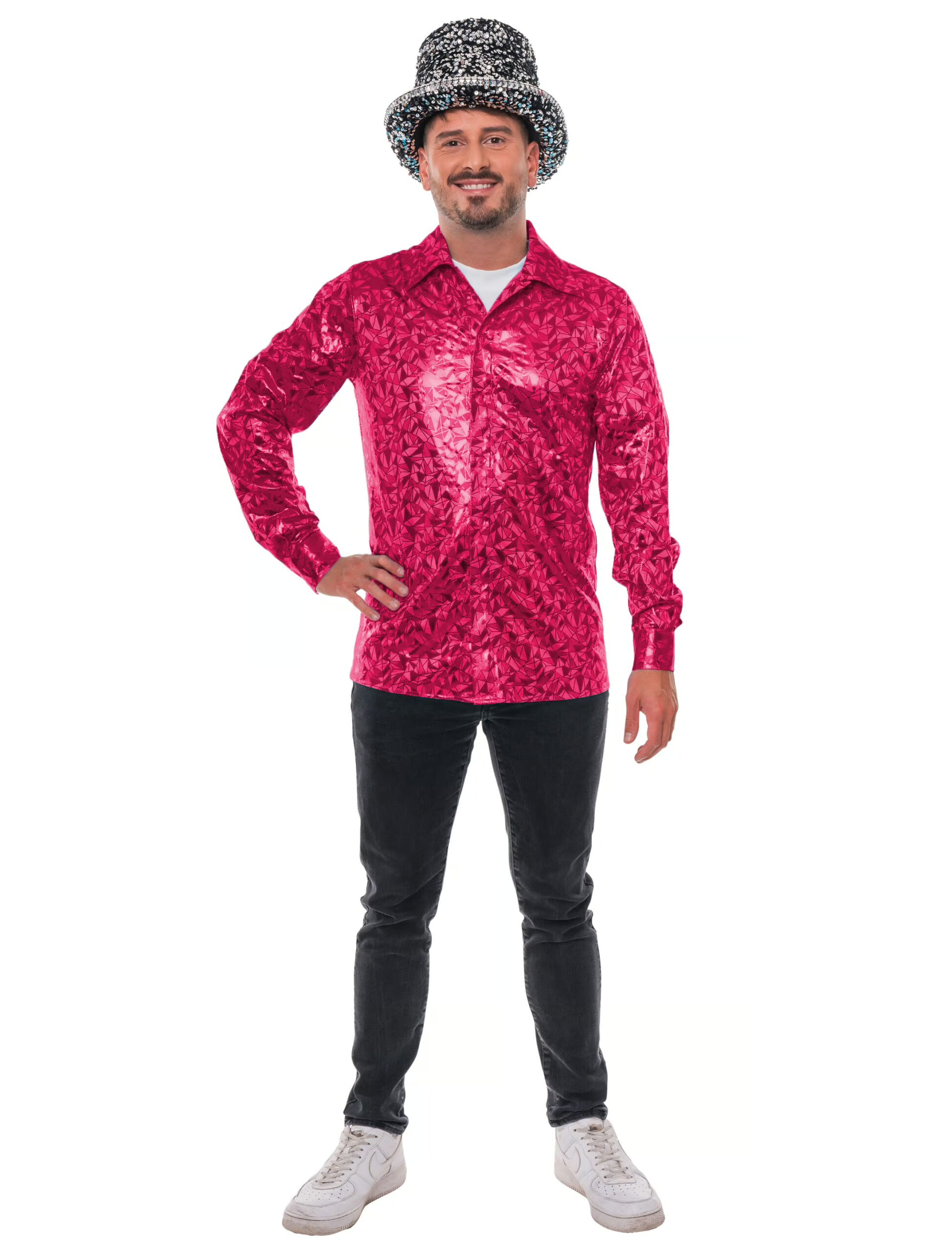 Mit unserem Metallic Disco Hemd für Herren bringst du Glanz, Farbe und echtes Party-Feeling in deinen Kleiderschrank! Dieses Hemd ist ein echter Blickfang und verbindet auffälliges Design mit einem Hauch von Retro-Charme. Das besondere Highlight ist das Metallic-Muster, das je nach Lichteinfall dezent bis auffällig schimmert und für den typischen Disco-Effekt sorgt. Das Hemd ist in mehreren Farben erhältlich, damit du genau den Ton findest, der zu deinem persönlichen Stil oder deinem nächsten Auftritt passt. Ob an Karneval, auf der Tanzfläche oder bei Motto-Partys – mit diesem Hemd bist du bestens ausgestattet. Ein Muss für alle, die Spaß an Mode haben und gerne im Rampenlicht stehen!