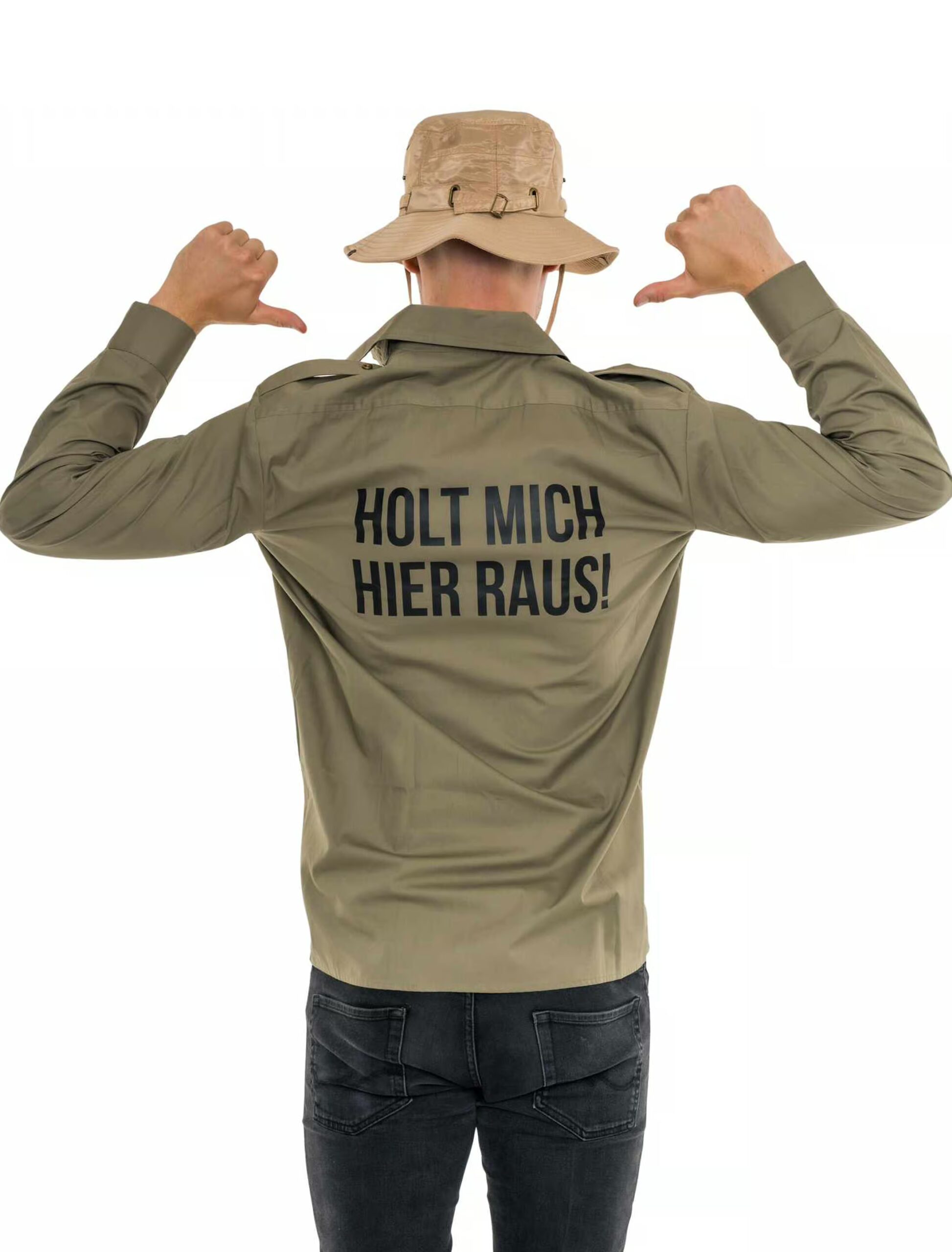 Bist du bereit für das Abenteuer deines Lebens? Mit unserem Herren Dschungelcamp Hemd wirst du der Star jeder Party! Das Hemd kommt mit dem legendären Schriftzug „Holt mich hier raus!“ auf dem Rücken, damit jeder weiß: Du hast genug von der Wildnis und bist bereit, den Großstadtdschungel zu erobern. Die perfekte Wahl für alle, die beim nächsten Kostümball nicht nur auffallen, sondern auch für die besten Lacher sorgen wollen. Du kannst der Dschungelcamp-Dramatik zwar nicht wirklich entkommen, aber mit diesem Hemd bist du zumindest bestens gekleidet! Also, worauf wartest du? Hol dir das Herren Dschungelcamp Hemd und bereite dich auf dein eigenes Abenteuer vor!