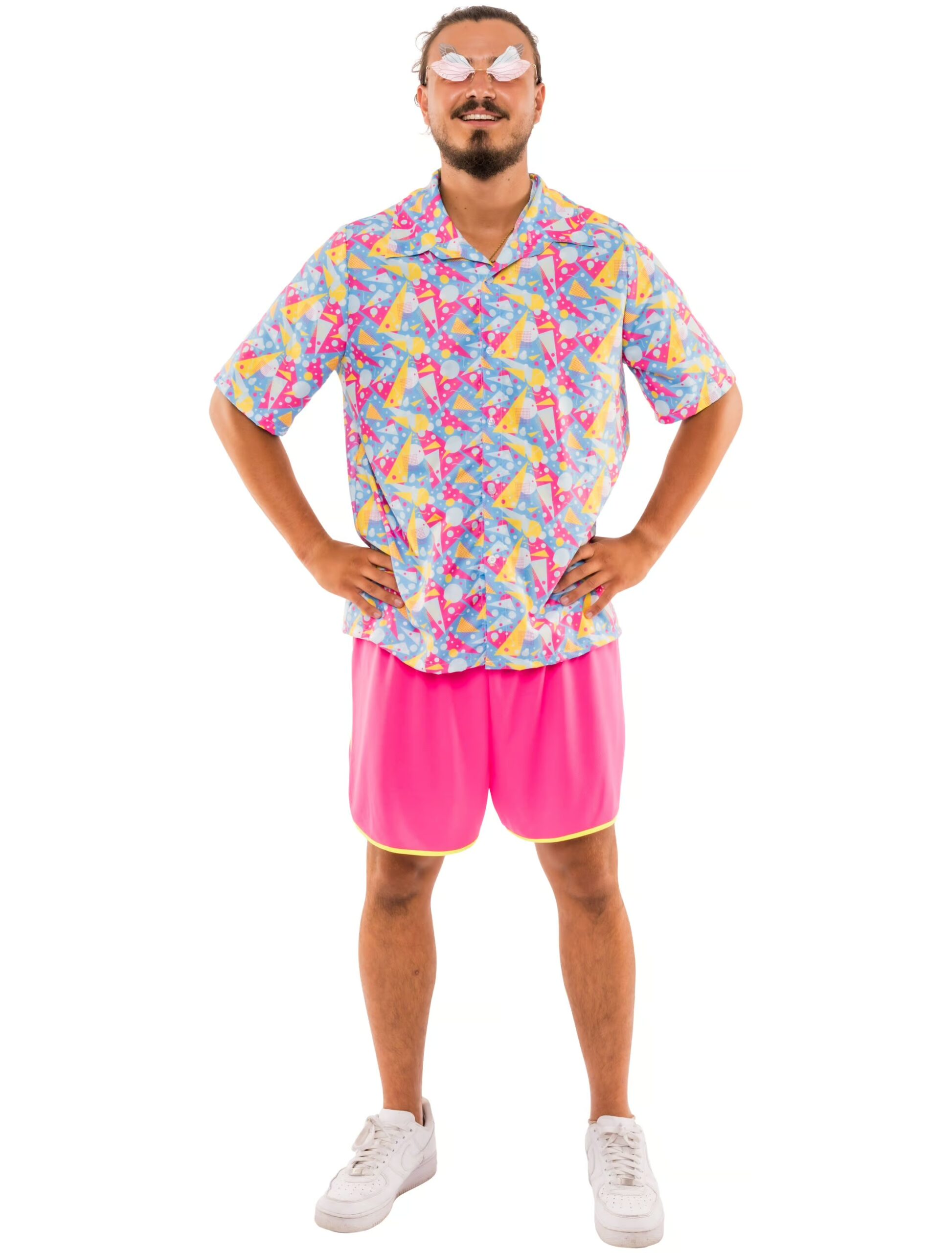 Hemd mit Print Dreiecke Herren hellblau M, ideal für Karneval & Fasching
