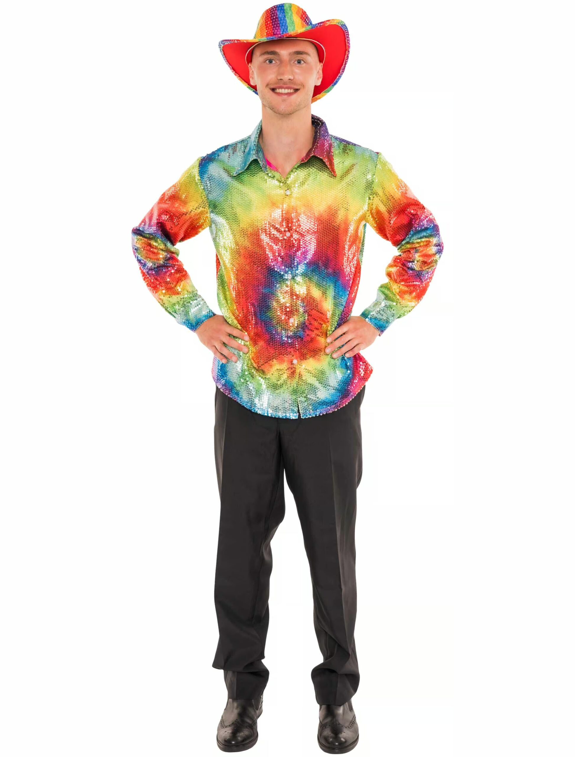Bist du bereit, die Party mit deinem Glanz und deiner Farbenpracht zu erobern? Mit unserem Pailletten Herren Hemd im Regenbogen-Muster wirst du zum lebenden Highlight jeder Feier. Dieses Hemd ist mehr als nur ein Outfit, es ist eine Ansage: Du bist hier, um zu feiern, zu tanzen und alle mit deinem leuchtenden Charisma anzustecken. Die funkelnden Pailletten in allen Regenbogenfarben machen dich zum ultimativen Blickfang – egal ob auf der Pride Parade, der Disco-Nacht oder bei einer Mottoparty. Es ist perfekt für alle, die keine Angst haben, aufzufallen und stolz zu zeigen, wie bunt das Leben sein kann! Bring Farbe und Glitzer in die Welt. Du bist der Regenbogen, den jede Party braucht!
