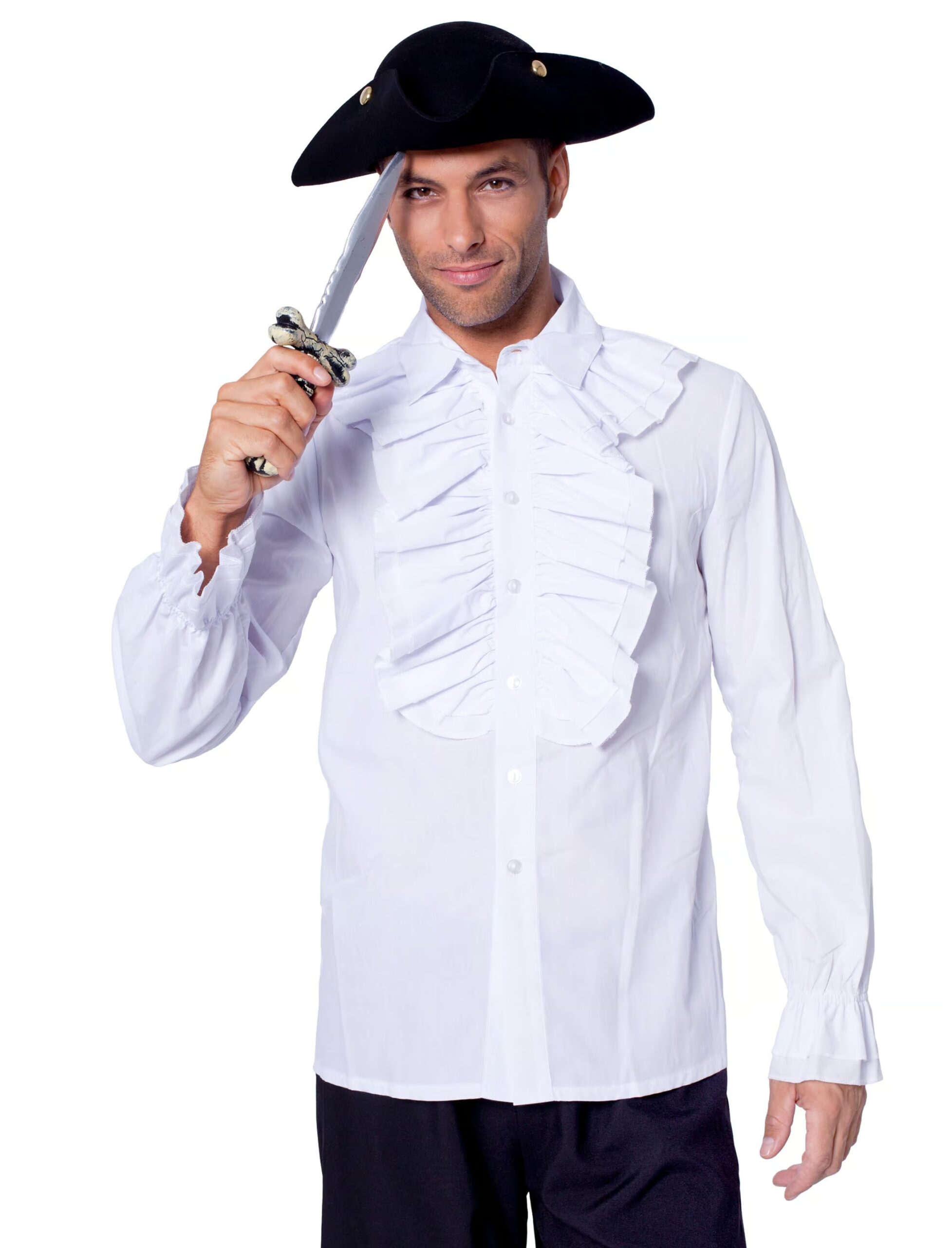 Ahoi Ihr Landratten! Unser weißes Piratenhemd mit Rüschen für Herren ist wie gemacht für Dein Piraten Kostüm. Das hochwertige Oberteil ist mit Knöpfen ausgestattet und sehr modisch geschnitten. Für jeden Seeräuber ein absolutes Highlight, für das sich Captain Jack sicher die Finger lecken würde!