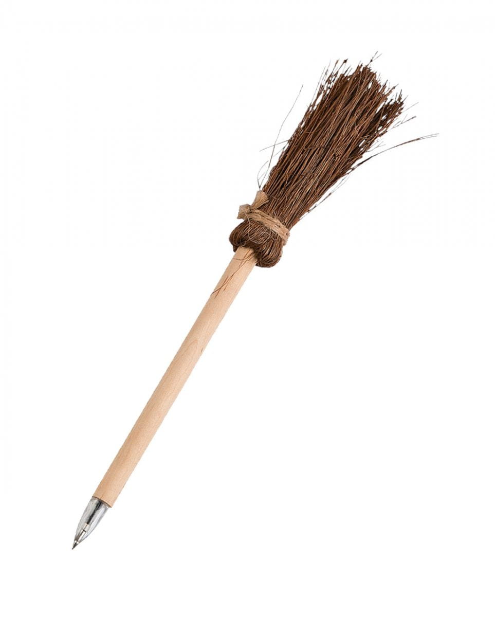 Hexenbesen Holz-Kugelschreiber als Halloween Geschenkartikel Witziger Walpurgisnacht Scherzartikel und Geschenkidee für Halloween Fans Witzige Geschenkartikel wie Halloween Scherzprodukte machen Geschenke zu etwas ganz besonderem. Statt einen langweiligen Stift zu verschenken – wie wäre es mit diesem Holz-Kugelschreiber Hexenbesen? Der Halloween Stift ist die perfekte Geschenkidee für Halloween-, Hexen- und Zauberer-Fans. Der Holz-Stift eignet sich auch perfekt als Gastgeschenk Halloween- und Walpurgis-Events. Der Holz-Kugelschreiber Hexenbesen schreibt mit schwarzer Tinte und die Mine des Halloween Schreibwerkzeugs ist umhüllt von unbehandeltem, hellbraunen Holz, das als Stil des Hexenbesens dient. Am oberen Ende befinden sich dünne Reisig-Borsten, die durch eine Schnur zusammengehalten werden und den Hexenbesen darstellen. Der Hexen- und Halloween-Geschenkartikel kann nicht nur zum Schreiben, sondern mit dem pinselartigen Besen auch zum Fegen der Schreibunterlage verwendet werden. Lieferumfang: 1x Holz-Kugelschreiber Hexenbesen als Halloween Geschenkartikel (mit Deckel) Farbe Stift: braun Farbe Tinte: schwarz Gesamtlänge: ca. 21 cm Material: Holz und Metall Geschenk- und Scherzartikel für Halloween- und Hexenfans