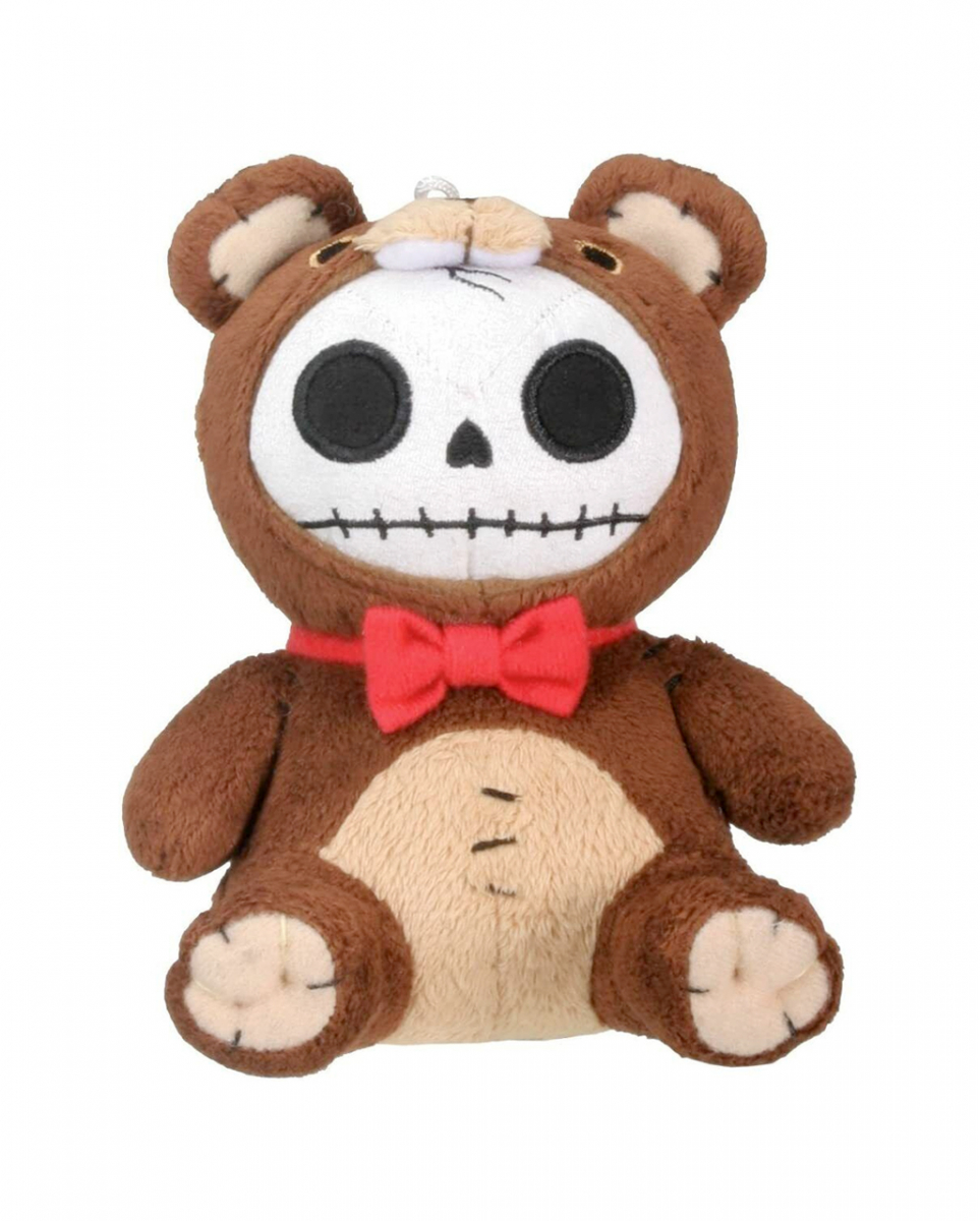 Honeybear – Furrybones Plüschfigur 16cm als Geschenkartikel Plüschbär als Furrybones Fanartikel für Gothics Unser kleiner Honeybear von Furrybones wartet schon darauf, bei dir einzuziehen. Platziere ihn in deinem Figurenregal und erfreue dich am creepy Bärchen! Die Furrybones Plüschfigur kommt mit einem süßen Skelettgesicht, das ihm seinen charakteristischen Furrybones Look verleiht. Das Gothic Kuscheltier ist super weich und eine geniale Geschenkidee für Horror Fans. Lieferumfang: 1 x Honeybear – Furrybones Plüschfigur 16cm als Geschenkartikel Farbe: Braun, Weiß, Rot Größe: ca. 16 cm Material: 100% Polyester Gothic Figur als Deko und Mitbringsel Putzige Halloween Geschenkidee Furrybones Kuscheltier im Bärenkostüm Gothic Skelettfigur und Halloween Accessoire Der Artikel ist ein Geschenkartikel. Nicht für Kinder unter 3 Jahren geeignet. Kann Kleinteile enthalten, die verschluckt werden können – Erstickungsgefahr. Von Feuer und offenen Flammen fernhalten.