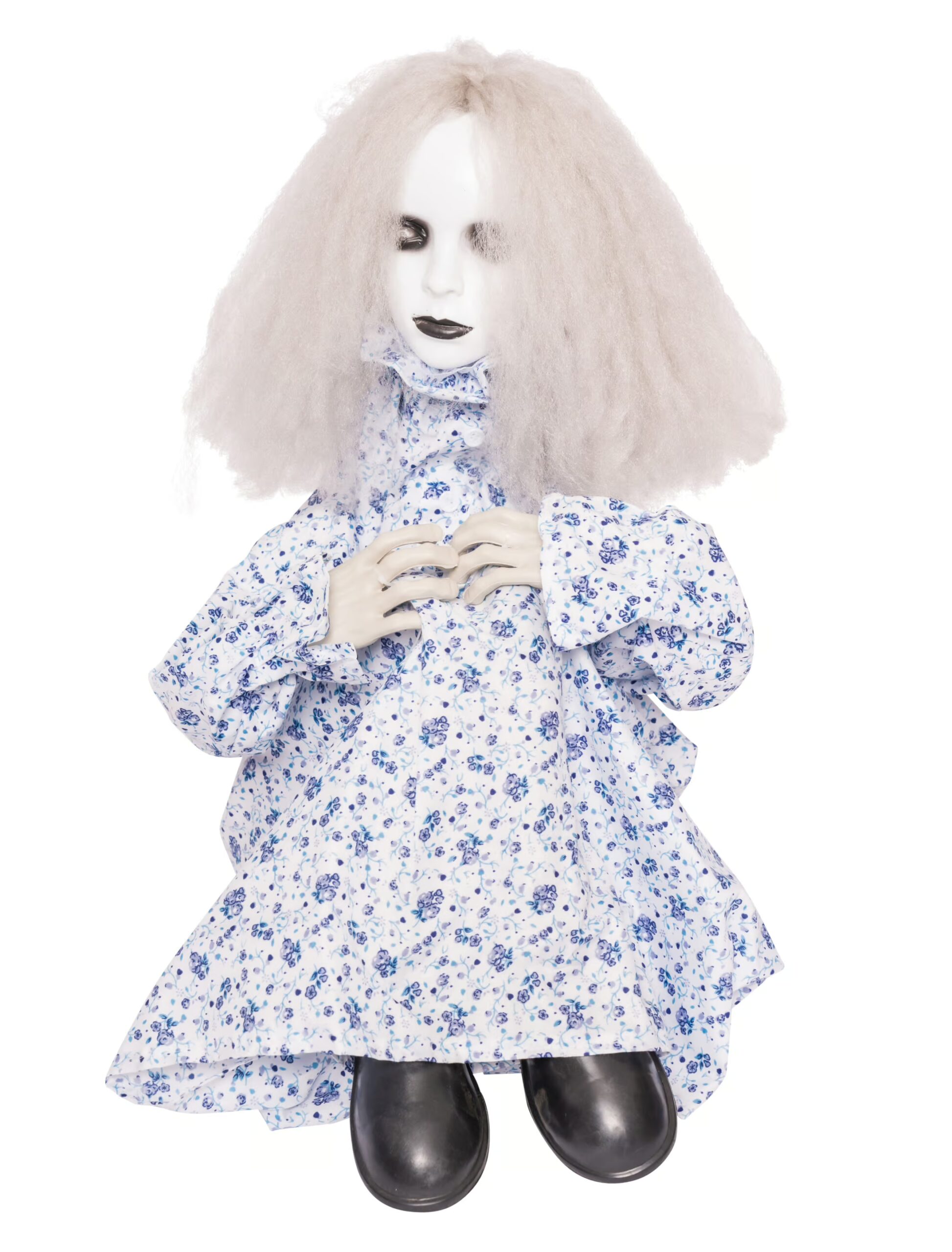 Findest Du nicht, dass dieses sitzende Horrormädchen erst mal harmlos, fast niedlich, wirkt? Wenn Du die 60 Zentimeter Grusel-Puppe als Party Deko aufs Sofa setzt, zieht sie die Blicke garantiert auf sich. Deine Partygäste werden aber schnell von putzig auf creepy umschalten, wenn Du heimlich den Knopf drückst. Die batteriebetriebene Halloween Deko, startet plötzlich einen Zitteranfall. Heulenden-Sound, blinkende Augen und abgefahrene Zuckungen machen sie zum Highlight Deiner Horrorparty.