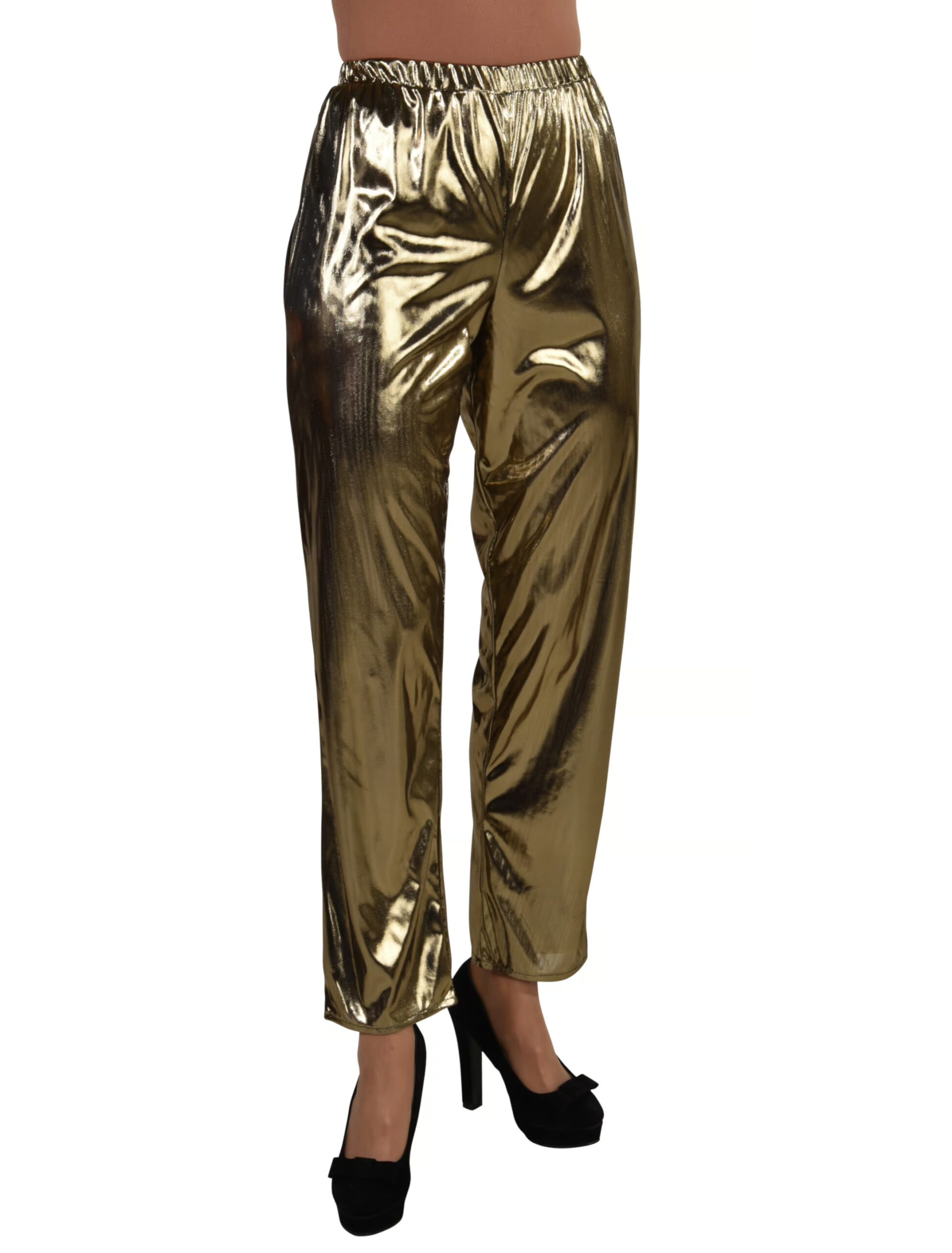 It’s partytime! Mit dieser metallicfarbenen Hose für Damen und Herren werden Disco-Träume wahr. Ob auf 80er-Jahre-Mottopartys oder auf Karneval, das glänzende Kleidungsstück ist nicht nur optisch ein Highlight, es lässt sich auch durch den Gummizug die ganze Nacht bequem tragen. Bist Du bereit mit der Discokugel um die Wette zu strahlen?