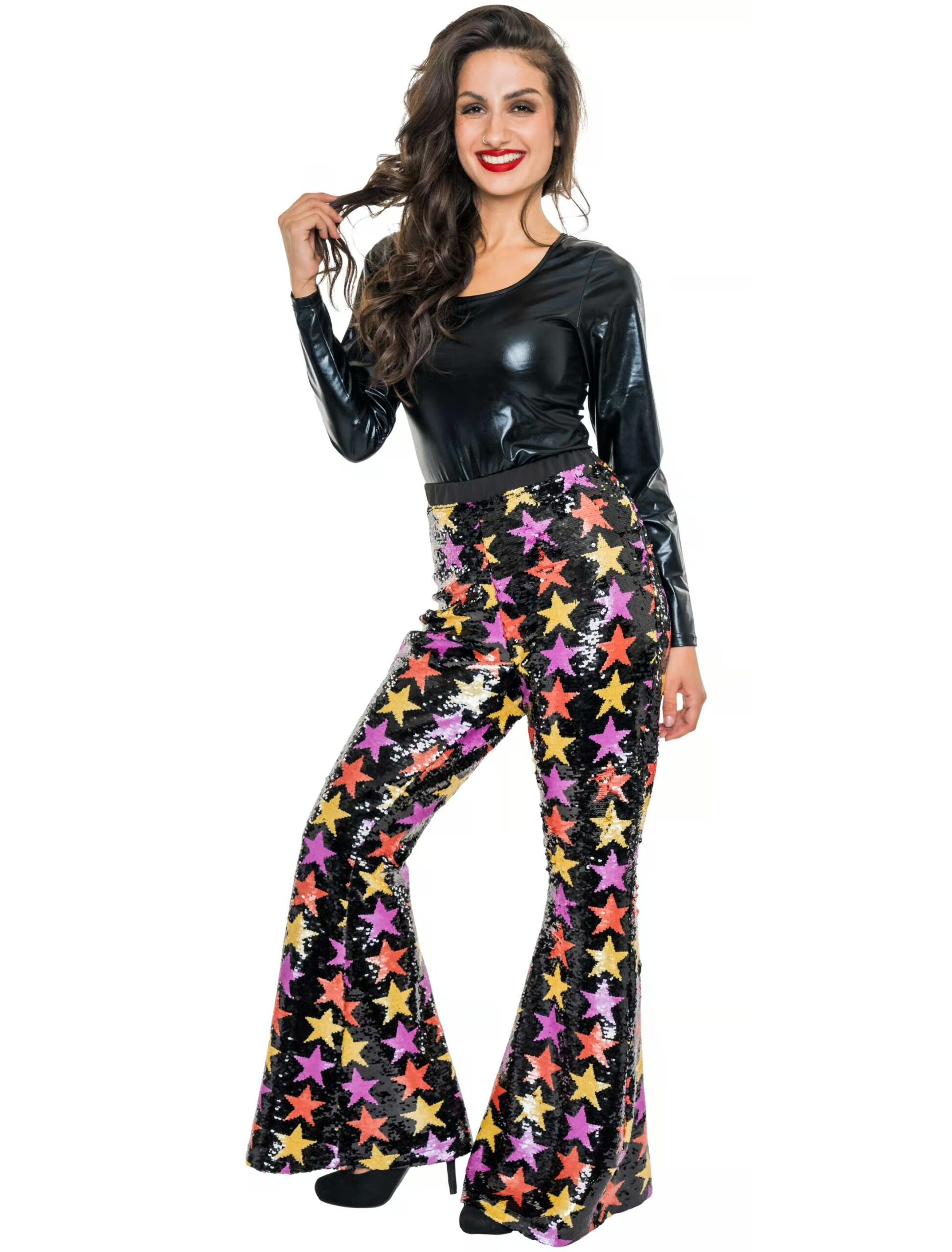 Du willst der Hingucker sein, der auf jeder Party die Blicke auf sich zieht? Dann schnapp dir unsere Damen Pailletten Hose mit Sternen und leuchte heller als die Milchstraße! Diese Hose bringt Glamour auf ein galaktisches Level – Ob auf der Tanzfläche, beim Festival oder einfach, wenn du mal zeigen willst, dass dein Style wirklich himmlisch ist – diese Hose lässt dich strahlen wie eine Supernova. Mit jedem Schritt funkeln die Sterne und machen dich zum schillernden Highlight des Abends. Sei bereit, die Nacht zu erobern, dein Sternenmoment wartet!