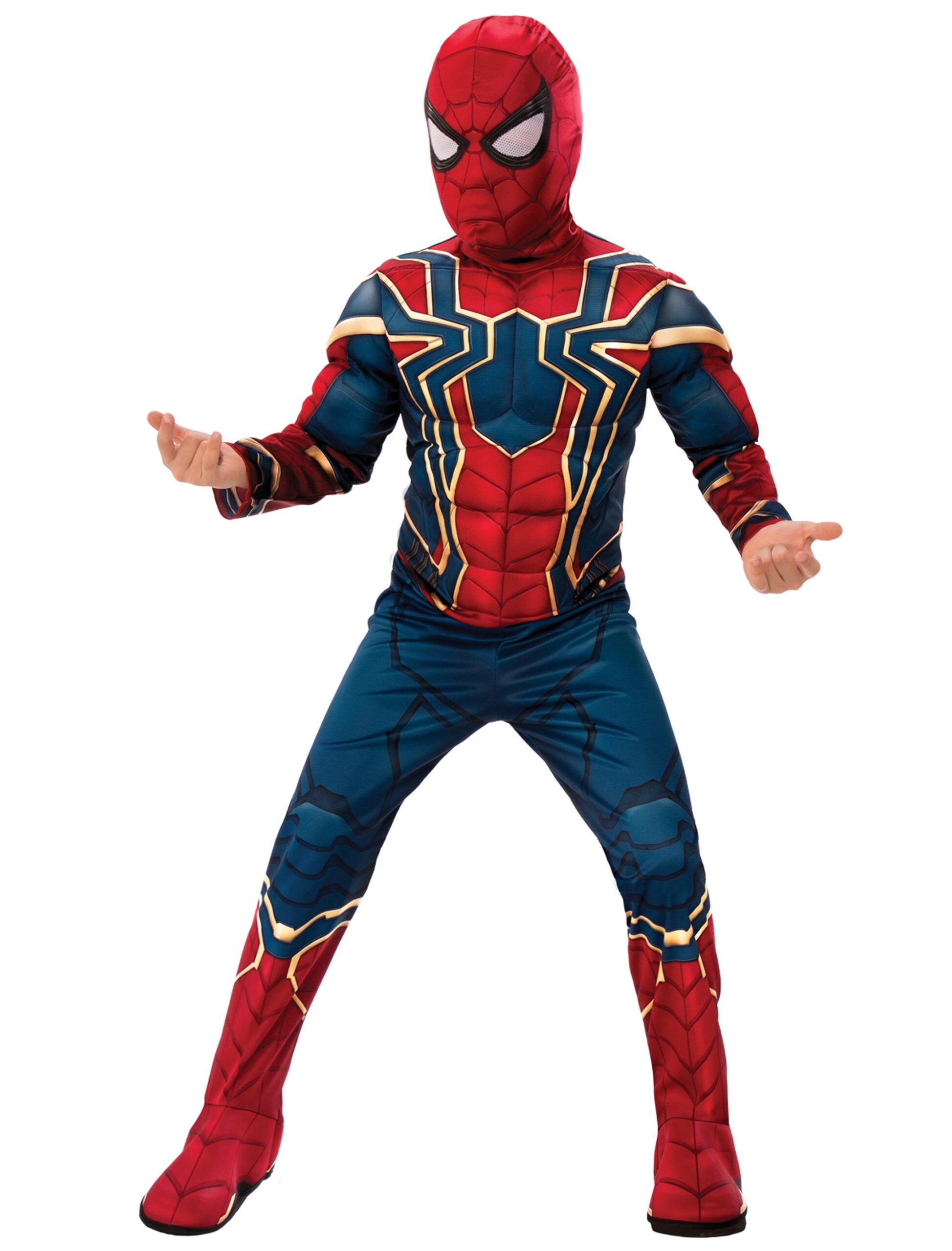 Das Ironspider Kostüm aus der offiziellen MARVEL Linzenzkollektion besteht aus einem Overall mit gepolsterter Oberarm- Schulter- und Brustpartie und der passenden Kopfbedeckung. Der detailliert bedruckte Anzug lässt sich am Rücken per Klett öffnen und hat integrierte Fußgamaschen mit Gummiband gegen Verrutschen. Das feine Mesh-Gewebe über den Spider-Augen sorgt für ausreichend Durchblick bei Deiner Spider Action.