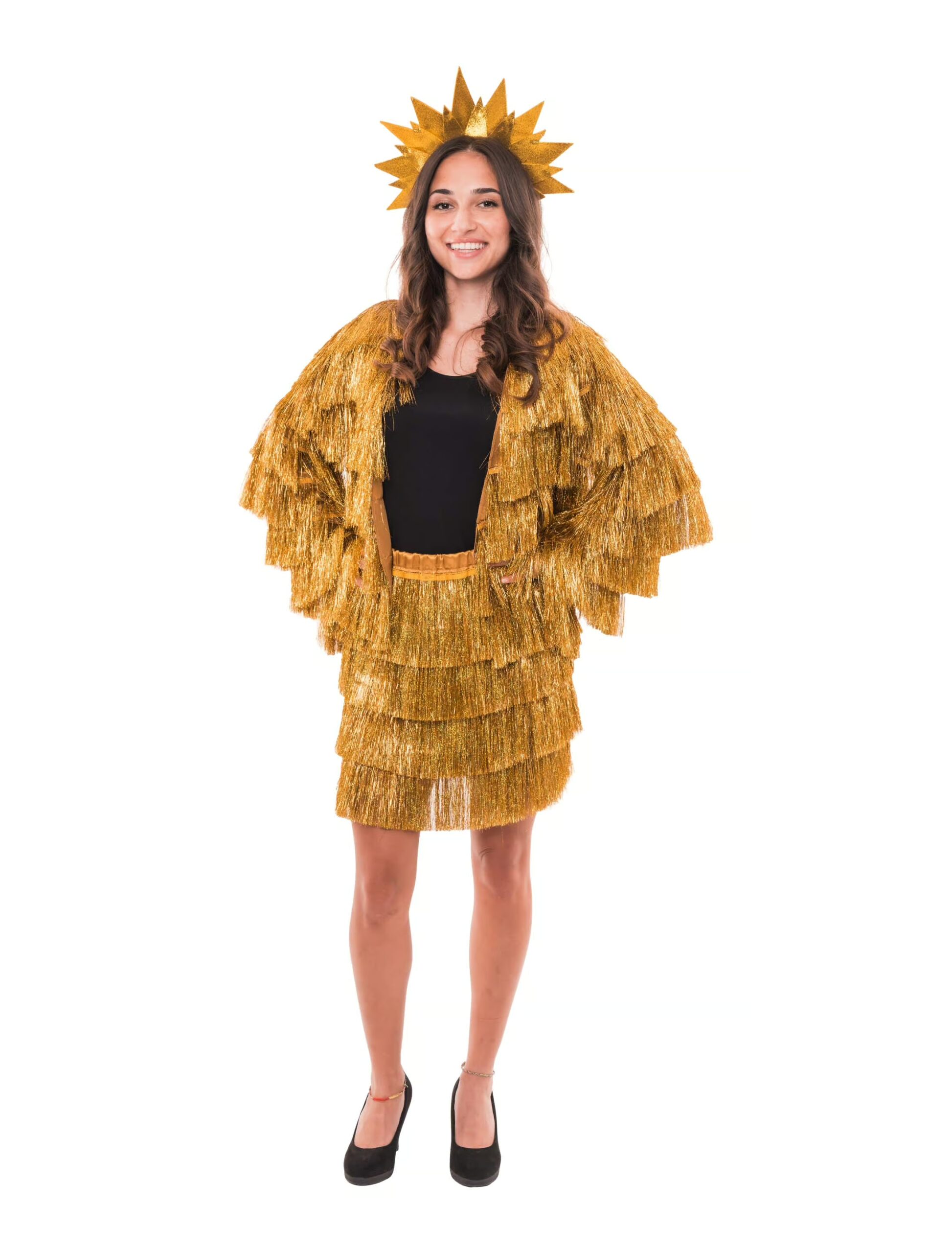 Mit unserer feinen Lametta Jacke für Damen bist du der funkelnde Mittelpunkt jeder Party! Diese außergewöhnliche Jacke ist gemacht für große Auftritte – glänzend, auffällig und voller Bewegung. Die langärmelige Jacke ist von oben bis unten in mehreren Lagen schimmerndem Lametta eingehüllt. Die feinen, glänzenden Streifen tanzen bei jeder Bewegung mit und erzeugen einen lebendigen, glitzernden Effekt, der garantiert für Aufmerksamkeit sorgt. Ob als Highlight fürs Festival, Karneval, die Bühne oder jede andere Gelegenheit, bei der du glänzen willst – mit dieser Jacke bist du bestens ausgestattet!