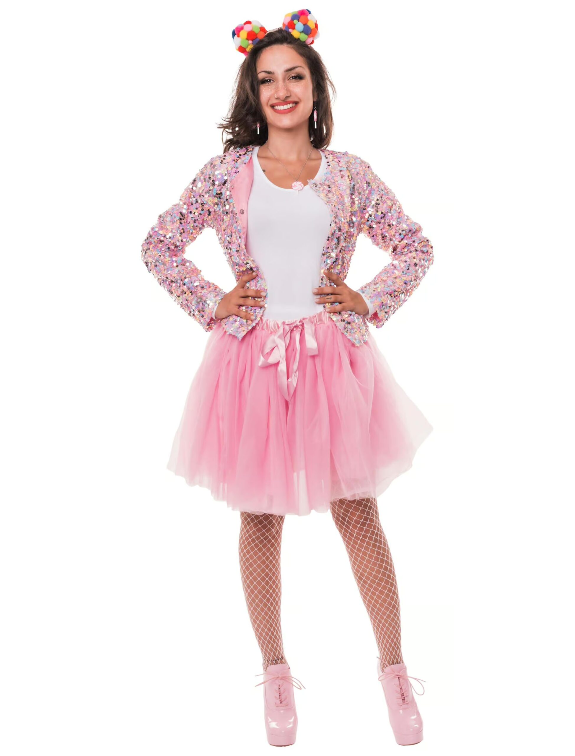 Unsere Jacke Pailletten für Damen ist ein echter Glanzauftritt. Die langärmelige Jacke ist von oben bis unten mit funkelnden Pailletten besetzt, die bei jeder Bewegung im Licht schimmern. Vorne lässt sie sich ganz einfach mit mehreren Druckknöpfen schließen und sitzt dadurch bequem und sicher. Ob Karneval, Festival oder Party – mit unserer Paillettenjacke setzt du ein funkelndes Statement!