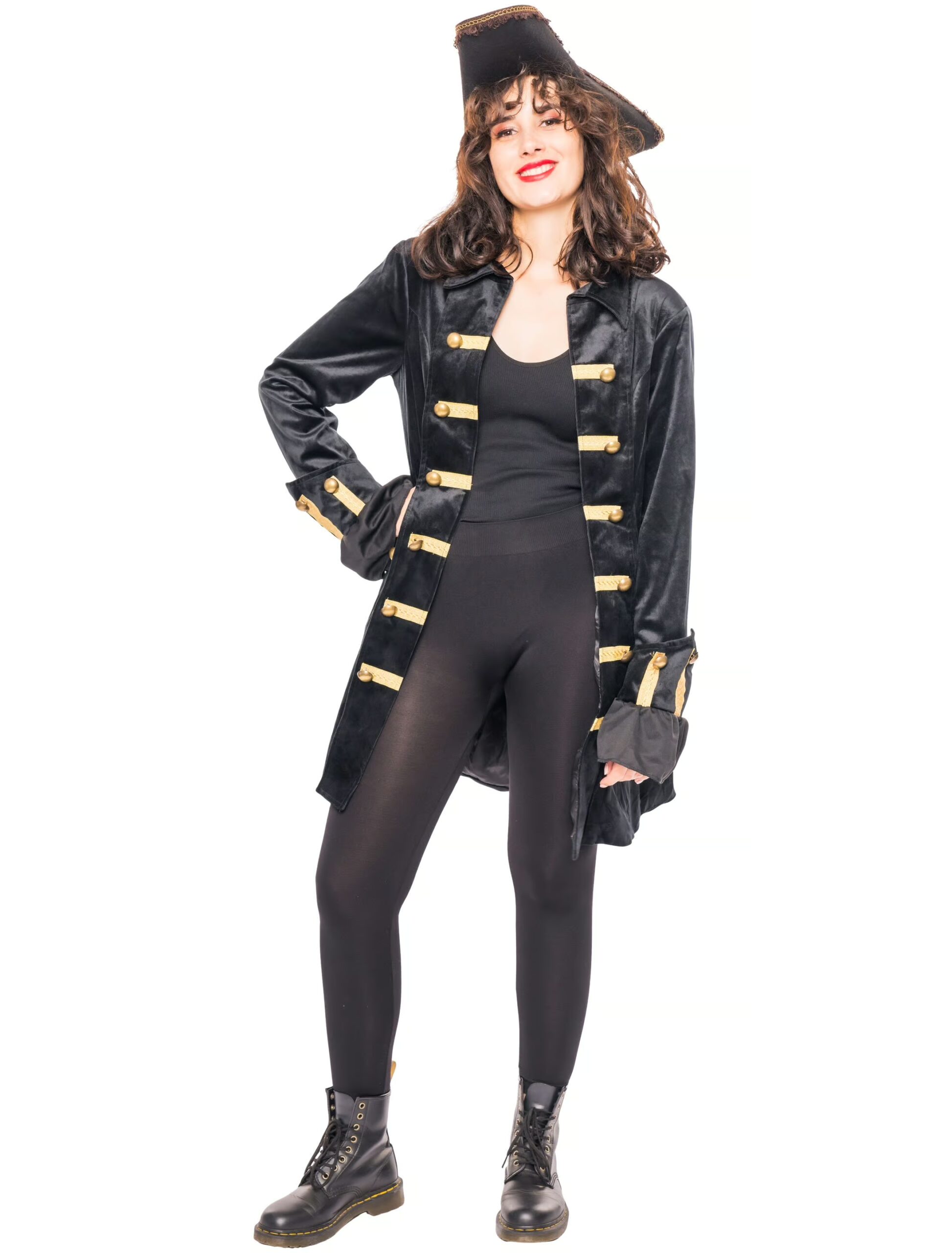Jacke Piratin Unifarben Damen schwarz 4XL, ideal für Karneval & Fasching
