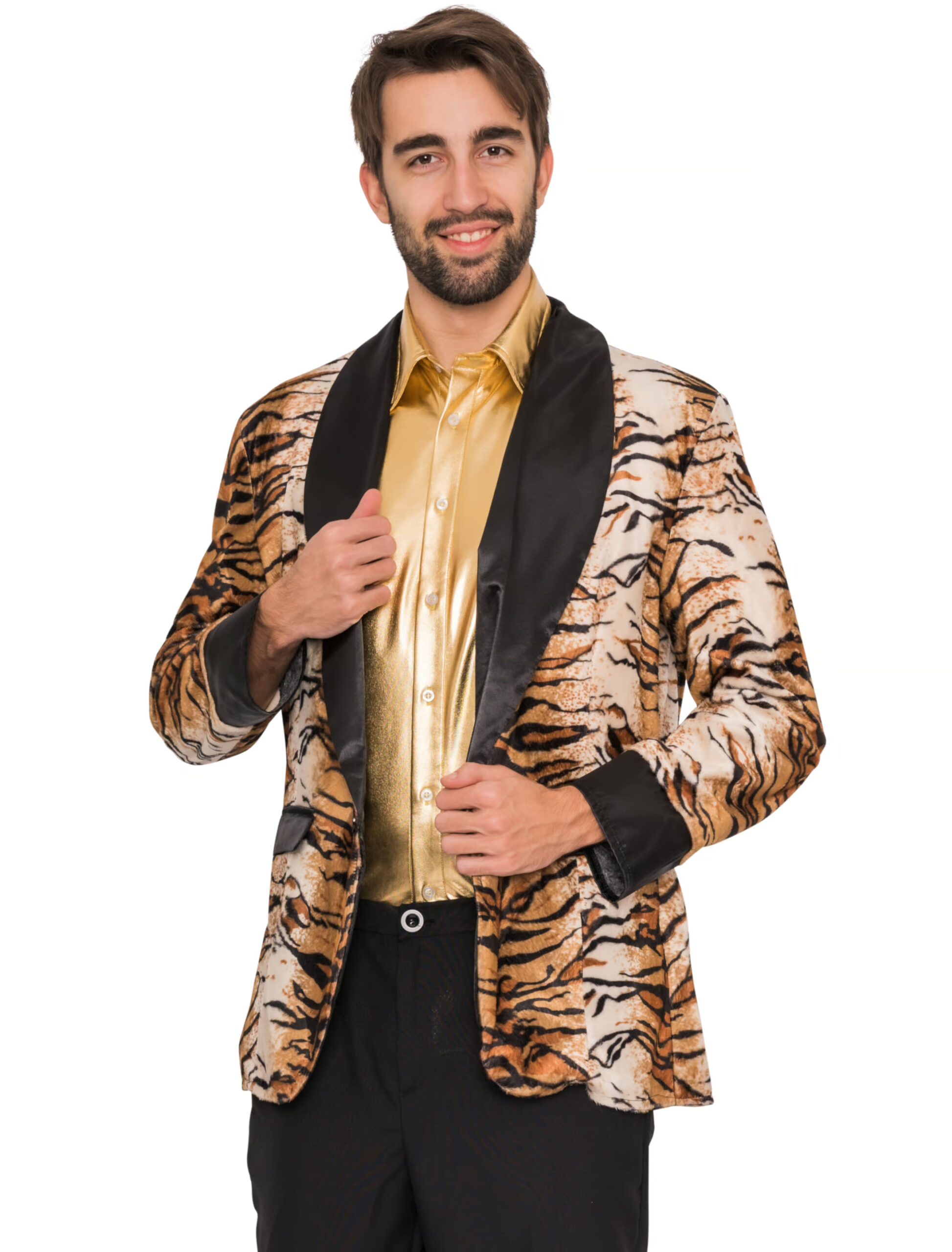 RAWR! Mit dem Jackett verwandelt sich einfach jeder in eine gefährliche Raubkatze. Das klassisch bräunliche Tigermuster und die schwarzen Akzente verleihen auch Dir die Eleganz der riesigen anmutigen Tiere. Aber Deiner Fantasie werden hier keine Grenzen gesetzt und das Jackett lässt sich wunderbar zu verschiedenen Verkleidungen kombinieren. Die Jacke lässt sich über einen Knopf schließen und ist in verschiedenen Größen erhältlich. Weitere passende Accessoires oder Kostümideen findest Du in unserem Shop.