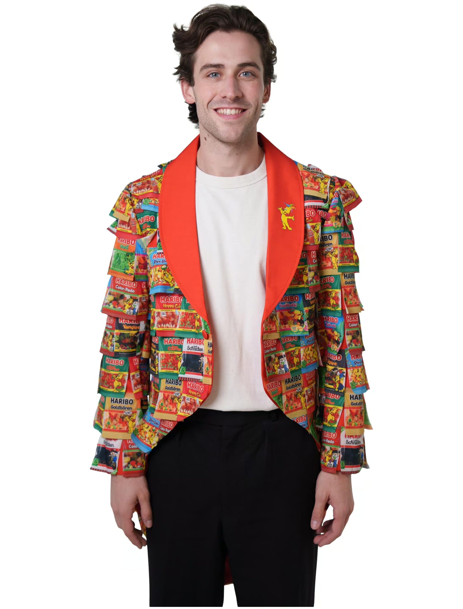 Tauche ein in die süße Welt des Jacketts HARIBO Tütchen für Herren – ein farbenfrohes und einzigartiges Kostüm, das exklusiv bei Deiters erhältlich ist! Dieses fröhliche Jackett ist mehr als nur ein Kleidungsstück – es ist eine Hommage an die leckeren HARIBO Tütchen. Das Jackett ist in verschiedenen Größen von S bis 3XL erhältlich, um sicherzustellen, dass jeder die Chance hat, sich in dieses witzige Kostüm zu hüllen. Die bunte Gestaltung des Jacketts spiegelt die Vielfalt der HARIBO Tütchen wider und verleiht jedem Anlass eine verspielte Note. Egal, ob du es zu Karneval, Halloween oder einer Mottoparty trägst, dieses Jackett wird sicherlich alle Blicke auf sich ziehen. Es besteht aus hochwertigem Material, das nicht nur bequem ist, sondern auch lange hält, damit du es immer wieder tragen kannst. Mit dem Jackett HARIBO Tütchen Herren bringst du nicht nur Farbe in deine Garderobe, sondern verbreitest auch gute Laune und süße Vibes wohin du auch gehst. Hol dir dieses einzigartige Kostüm