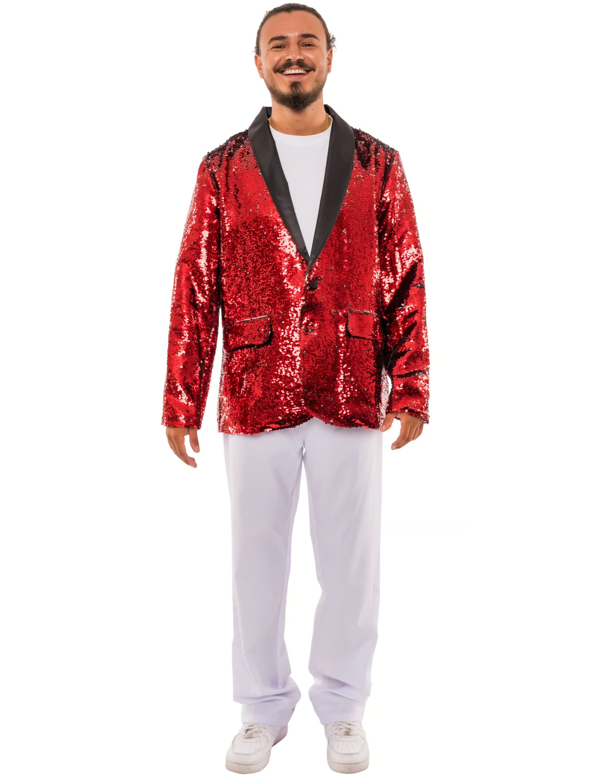 Mit unserem Jackett mit Wendepailletten für Herren bist du definitiv nicht zu übersehen – stilvoll, glänzend und bereit für deinen großen Auftritt. Das Jackett lässt sich vorne mit zwei Knöpfen schließen und bietet mit seinen zwei praktischen Taschen Platz für alles Wichtige. Das Highlight: Die Oberfläche ist komplett mit funkelnden Wendepailletten bedeckt. Einmal drüberstreichen – und schon wechselt das Jackett seinen Look. Perfekt für alle, die gerne im Mittelpunkt stehen und dabei auch noch ein bisschen zaubern möchten. Ob Karneval, Party, Gala oder Bühne – mit diesem Jackett bist du bestens gekleidet, wenn’s ein bisschen mehr Glanz sein darf!