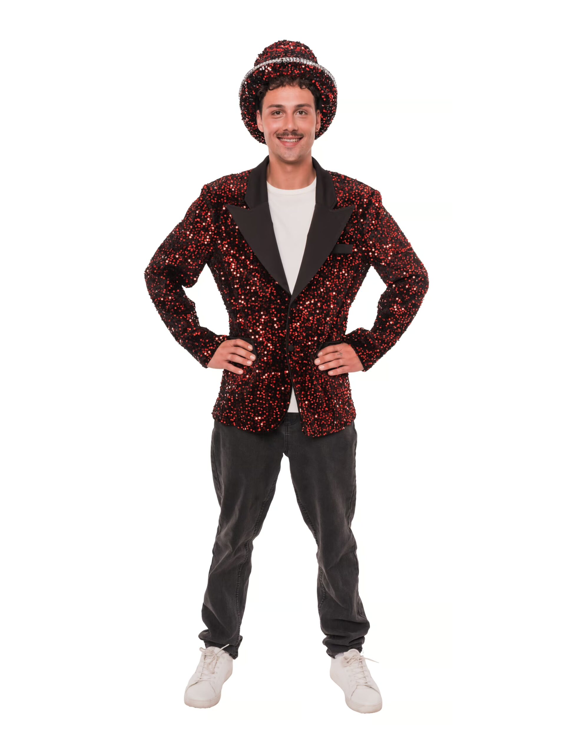 Mit unserem Pailletten Jackett für Herren bringst du Stil, Glanz und eine gehörige Portion Eleganz in deinen Auftritt! Dieses Jackett ist ein echter Blickfang und vereint edles Design mit aufregenden Details. Vorne lässt sich das Jackett bequem mit zwei Knöpfen schließen, wodurch es sich perfekt über Hemd oder Shirt tragen lässt. Drei angedeutete Taschen sorgen für den klassischen Jackett-Look und runden das Design harmonisch ab. Das Besondere an diesem Modell ist die samtige Textur, die nicht nur hochwertig aussieht, sondern sich auch angenehm anfühlt. Veredelt wird der Stoff durch farblich passende Pailletten, die je nach Lichteinfall dezent schimmern. Erhältlich in mehreren Farben, kannst du das Jackett perfekt auf deinen individuellen Stil abstimmen, egal ob für festliche Anlässe, die Bühne oder besondere Events. Mit diesem Jackett bist du bestens ausgestattet!