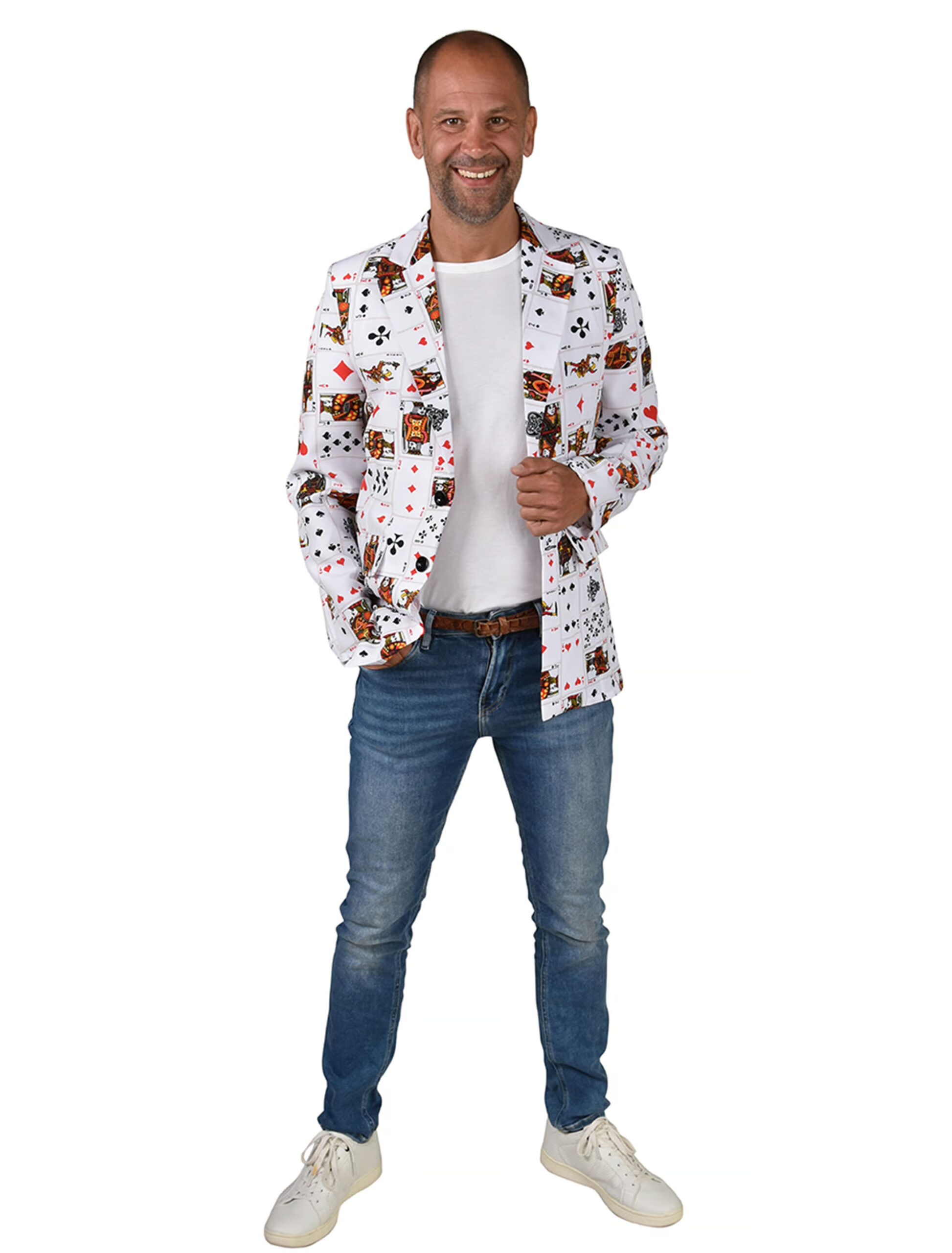 Jackett Spielkarten Herren schwarz/weiß/rot L, ideal für Karneval & Fasching