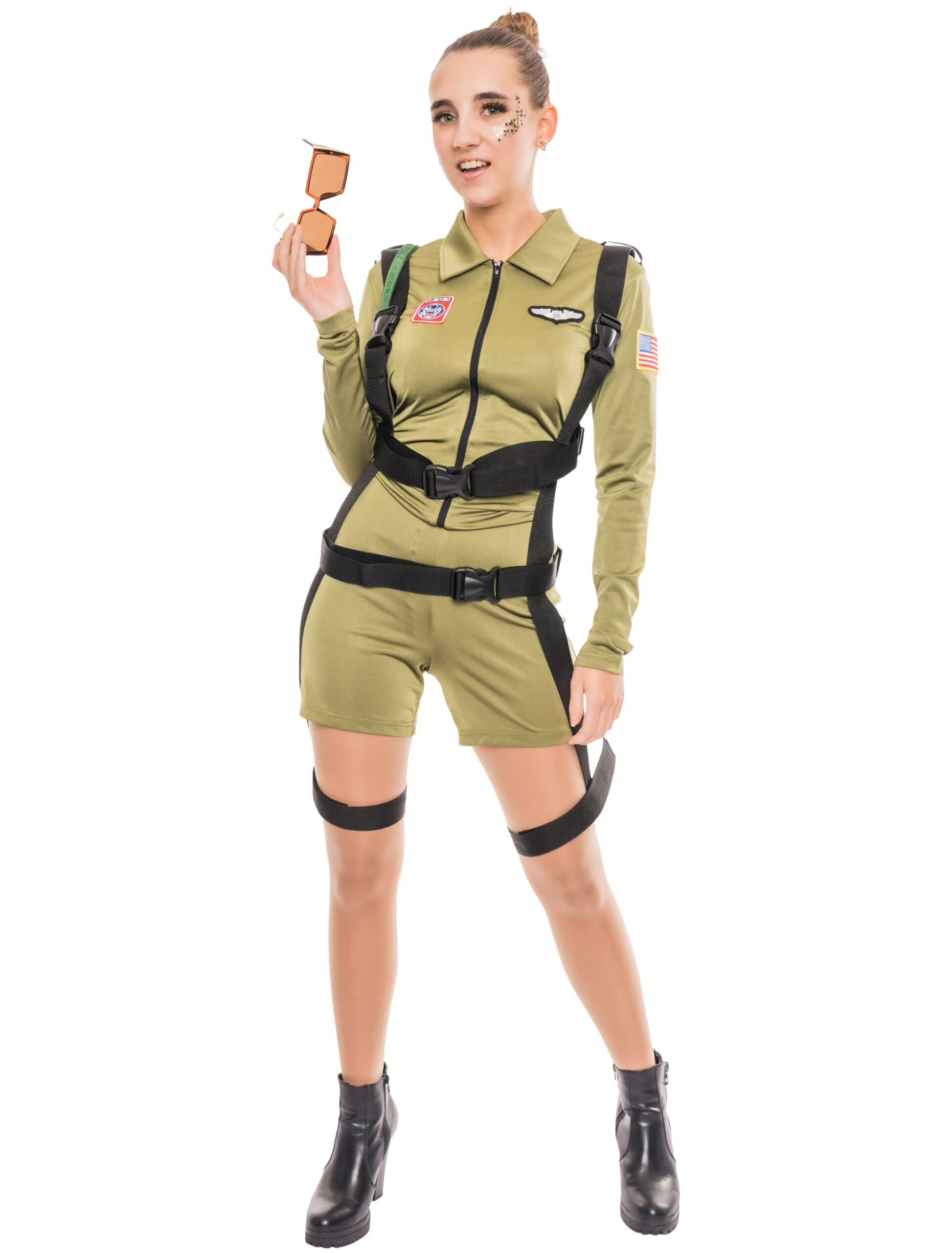 Jetpilot kurz Unifarben Damen olivgrün 2XL/3XL, ideal für Karneval & Fasching