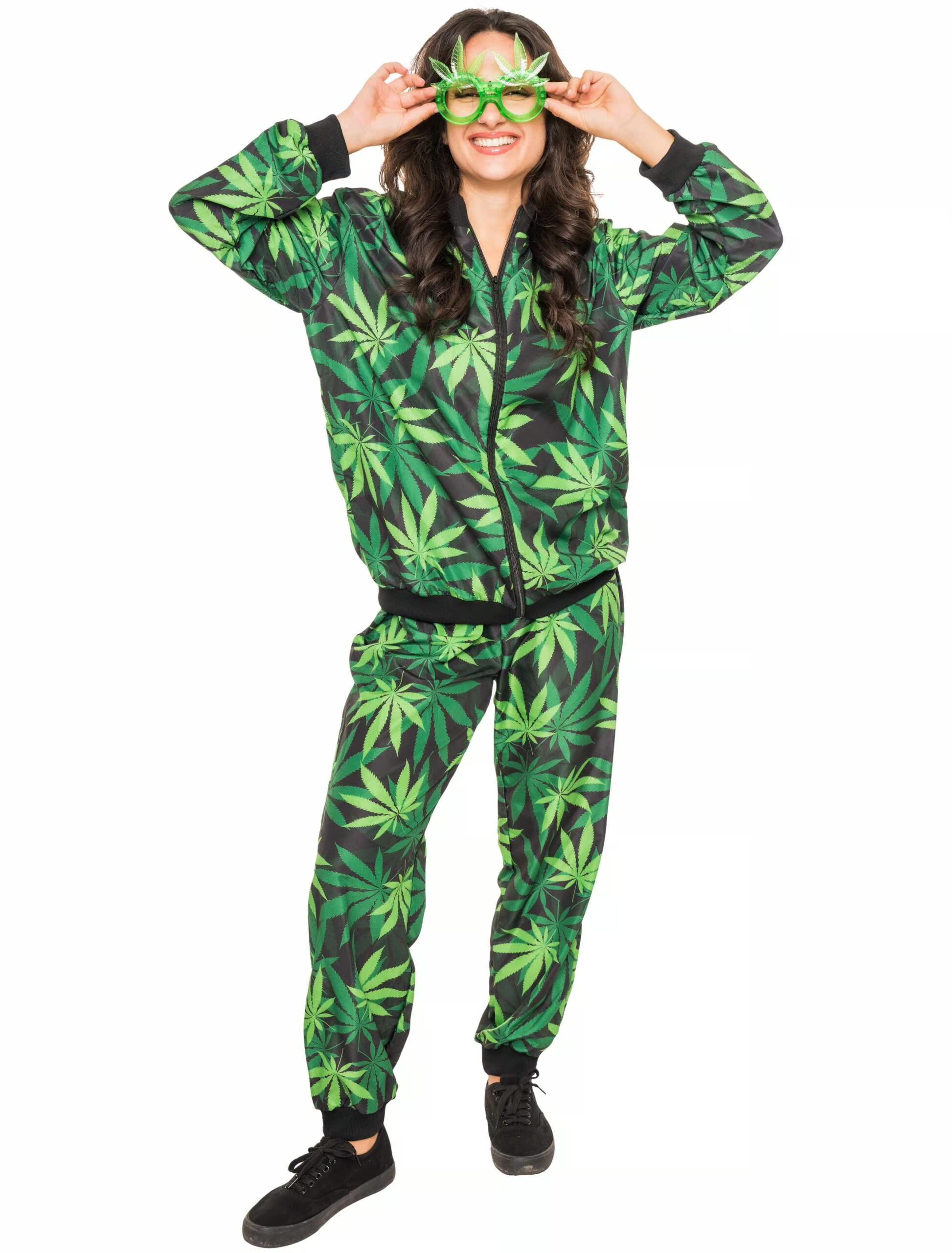 Schnapp dir unseren zweiteiligen Jogginganzug mit Cannabis Muster und bring deinen lässigen Flair auf ein ganz neues Level. Ob Couchpotato-Modus, Party-Moves oder einfach ein Spaziergang durch die Nachbarschaft – mit diesem Outfit bist du immer auf der richtigen Wellenlänge. Bequem, auffällig und genau das richtige Maß an entspanntheit. Lehn dich zurück und lass die Welt wissen, dass du im Flow bist!