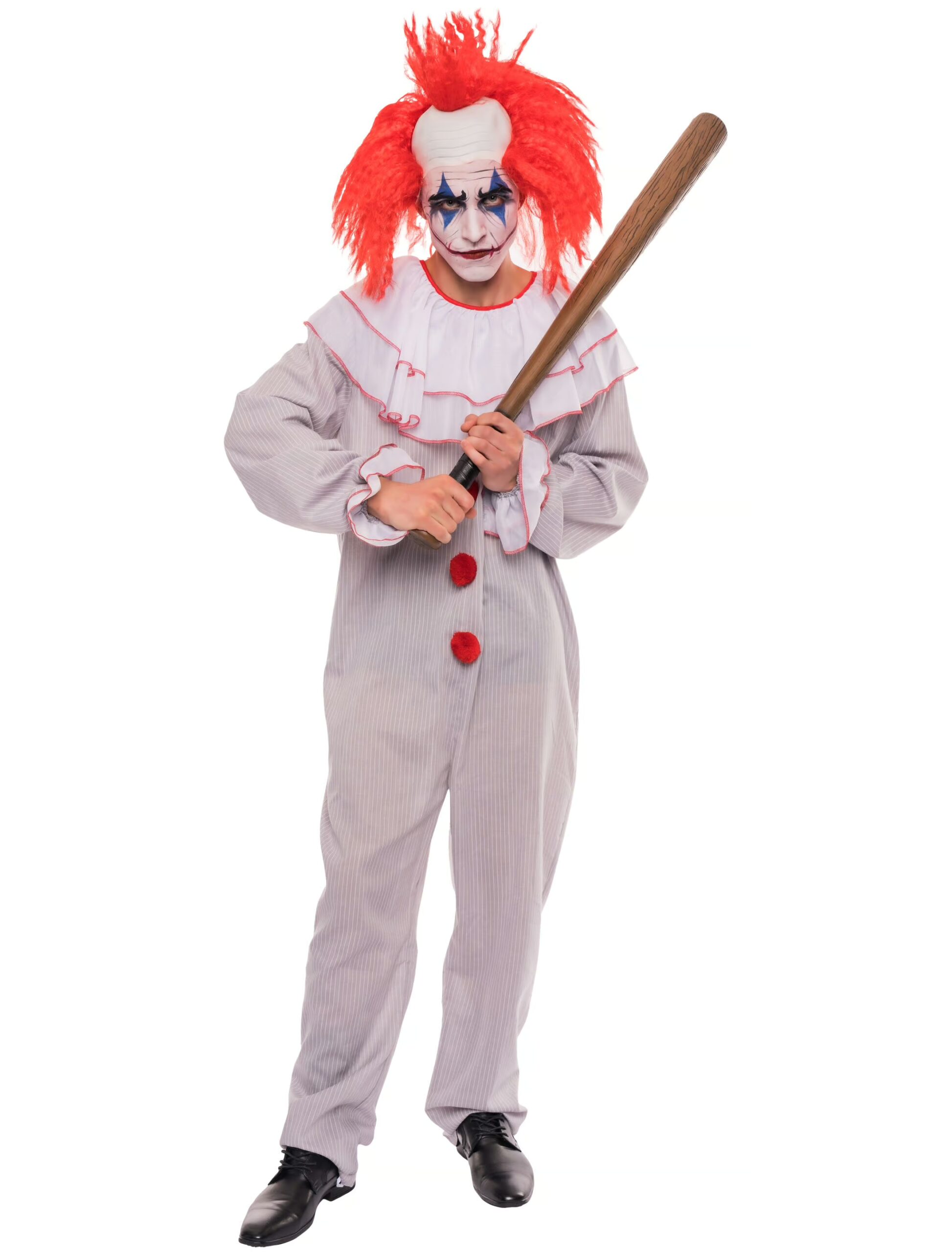 Jumpsuit Horrorclown Herren grau S/M, ideal für Karneval & Fasching