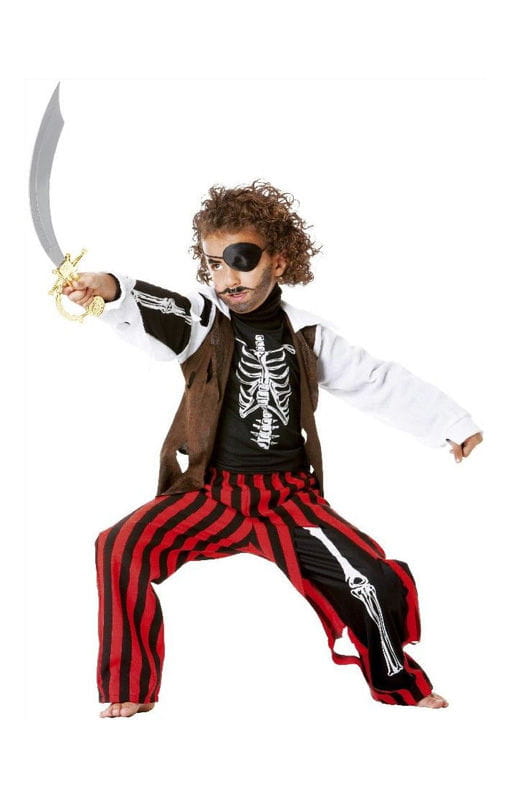 Skelettpirat Kinderkostüm Seeräuber Kostüm für Jungs als ideales Faschingskostüm Mit dem Skelettpirat Kinderkostüm wirst Du alle gefährlichen Situationen bestehen, den riesigen Goldschatz finden und im Mittelpunkt aller Karnevalsparty stehen Das Skelettpirat Kostüm für Jungs ist zweiteilig, es besteht aus einer rot-schwarz gestreiften Hose und einem schwarzen T-Shirt, die mit Skelettmustern versehen sind. Dem Skelettpirat Kinderkostüm sind noch ein weißer Krage, eine braune Weste und eine Schärpe angenäht Lieferumfang: 1 x Skelettpiratr Kinderkostüm Größe: M 10/12 Jahre ca. 144 cm, L 12/14 Jahre ca. 156 cm Farbe: Schwarz, braun, rot, weiß Material: 100% Polyester