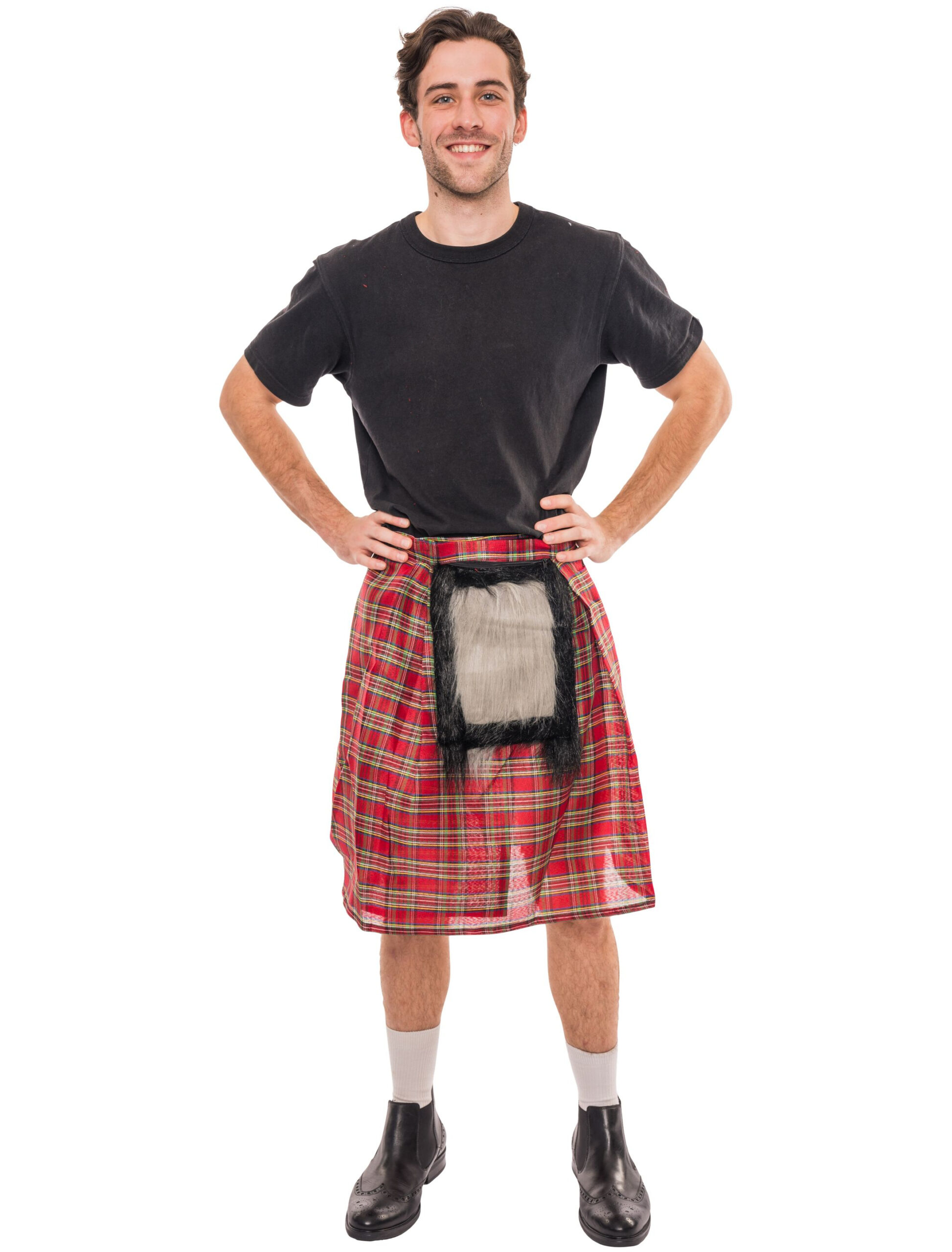 Kilt Herren schwarz/rot one size, ideal für Karneval & Fasching