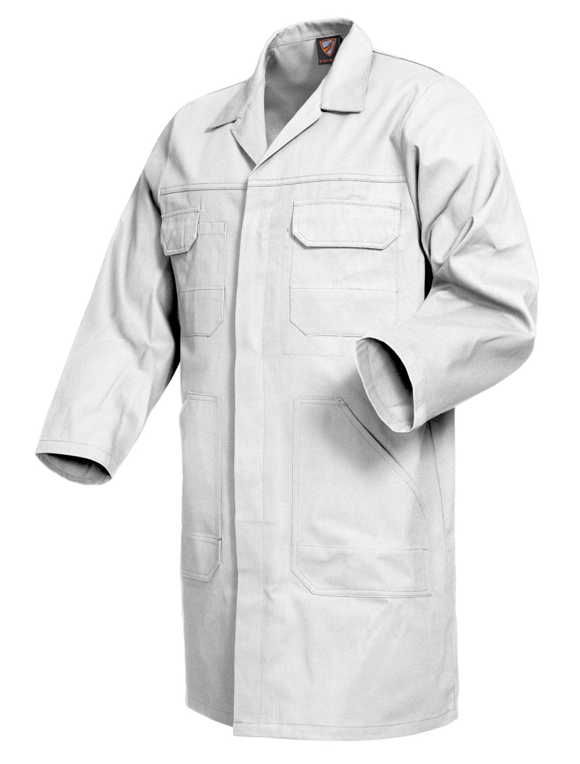 Arbeitskittel für Herren in Weiß Produktdetails: * – mit Reverskragen und verdeckter Knopfleiste * – eine Brusttasche mit Patte * – eine Smartphone-Tasche mit Patte und zwei integrierten Stifttaschen * – zwei Fronttaschen * – eine Brustinnentasche * – Größen M bis 3XL