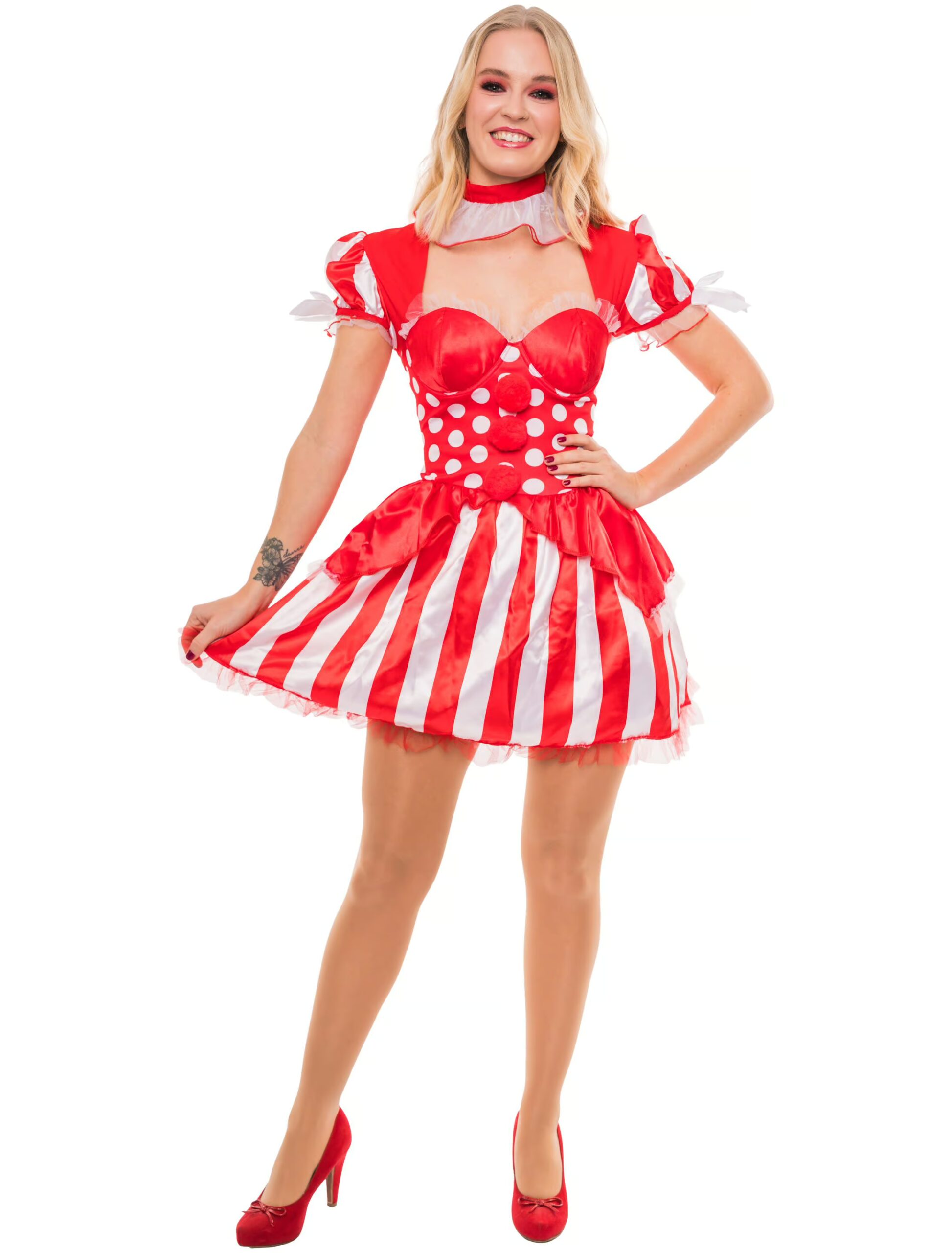 Kleid Clown Damen rot/weiß 44-46, ideal für Karneval & Fasching
