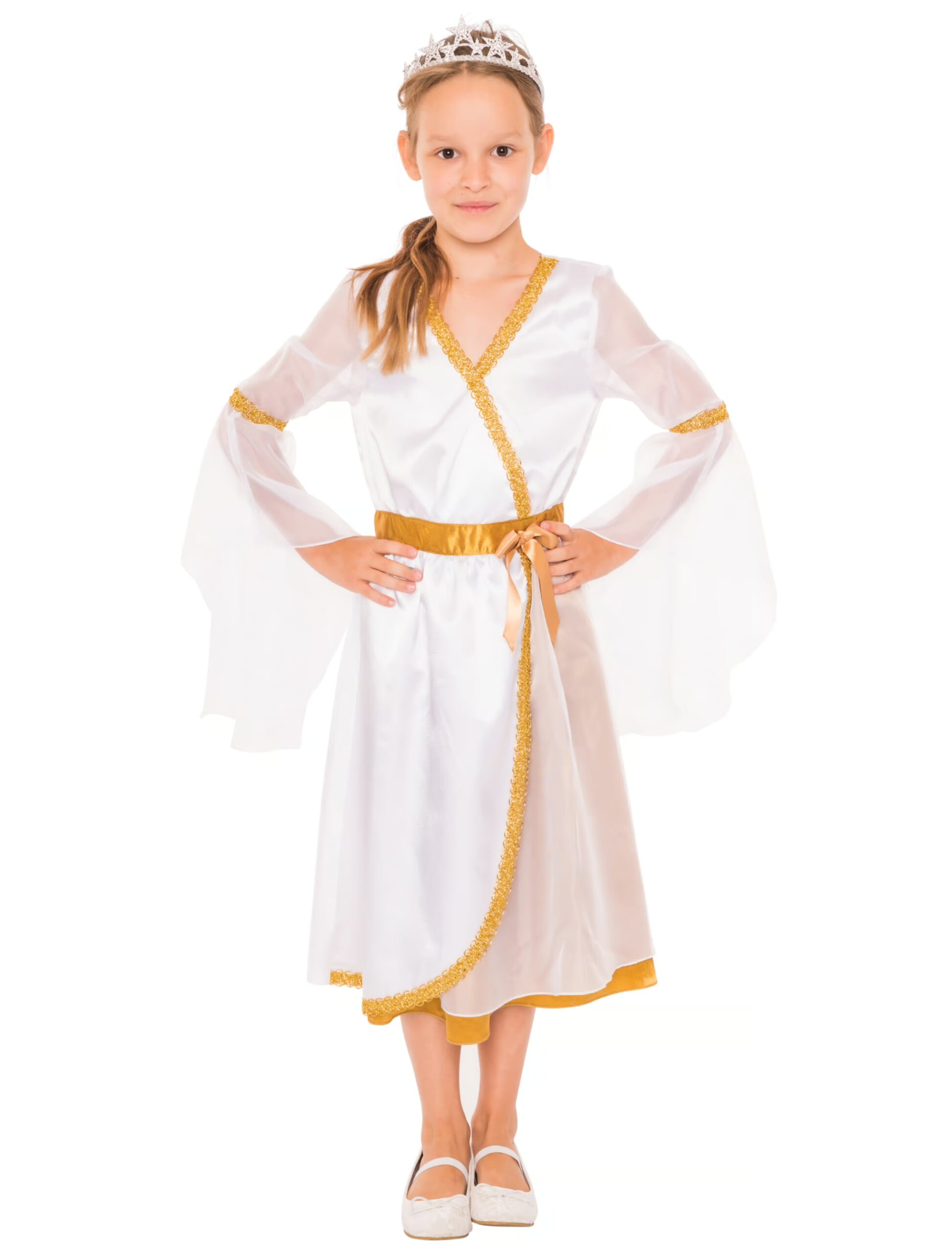 Kinder haben oft die wildesten Ideen, wenn es um FaschingsKostüme geht. Gehört Dein Kind auch dazu? Mit diesem wunderschönen Kostüm, verwandelt sich Dein Mädchen in einen Engel. Der transparente Tüllstoff und die goldenen Akzente am Saum verzaubern die Gäste jeder Karnevalsparty. Die verzierende Schleife gibt Deinem Kind den besonderen Look, mit dem es sich von anderen KarnevalsKostümen abhebt. Dein Mädchen wird sich in diesem Kostüm wie ein wahrer Engel fühlen und sich ganz bestimmt auf Fasching freuen, um seine Engelskräfte beweisen zu dürfen.