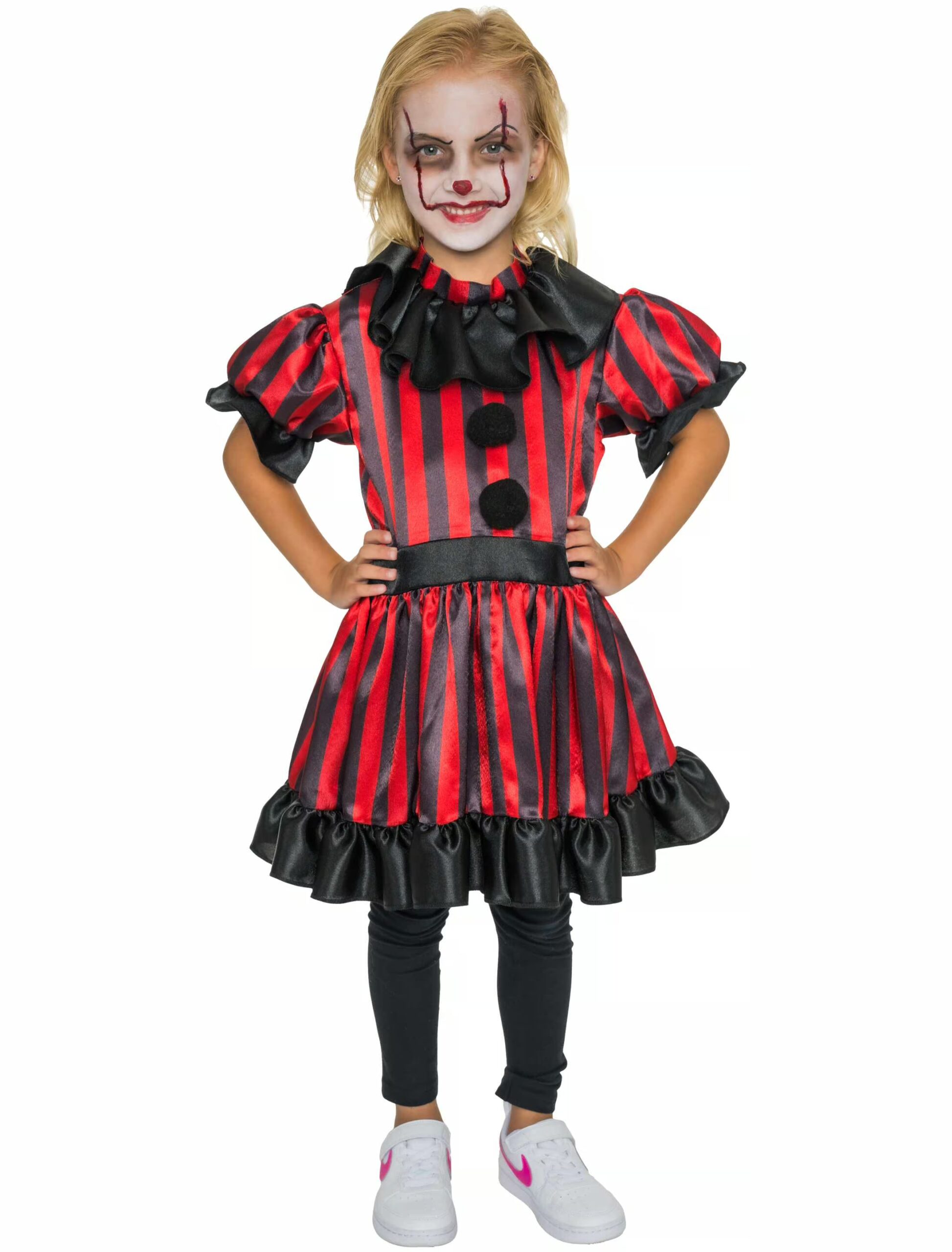 Achtung, jetzt wird’s gruselig – und gleichzeitig richtig cool! Mit unserem Gruselclown Kleid wirst du garantiert für jede Menge Schreck und Spaß sorgen! Bist du bereit, als der gruseligste Clown auf der nächsten Party zu erscheinen? Das Kleid ist eine perfekte Mischung aus gruseligem Clown-Look und frech-süßem Design. Gruselig, fröhlich und einfach ein Hingucker – das perfekte Outfit für kleine Clowns!