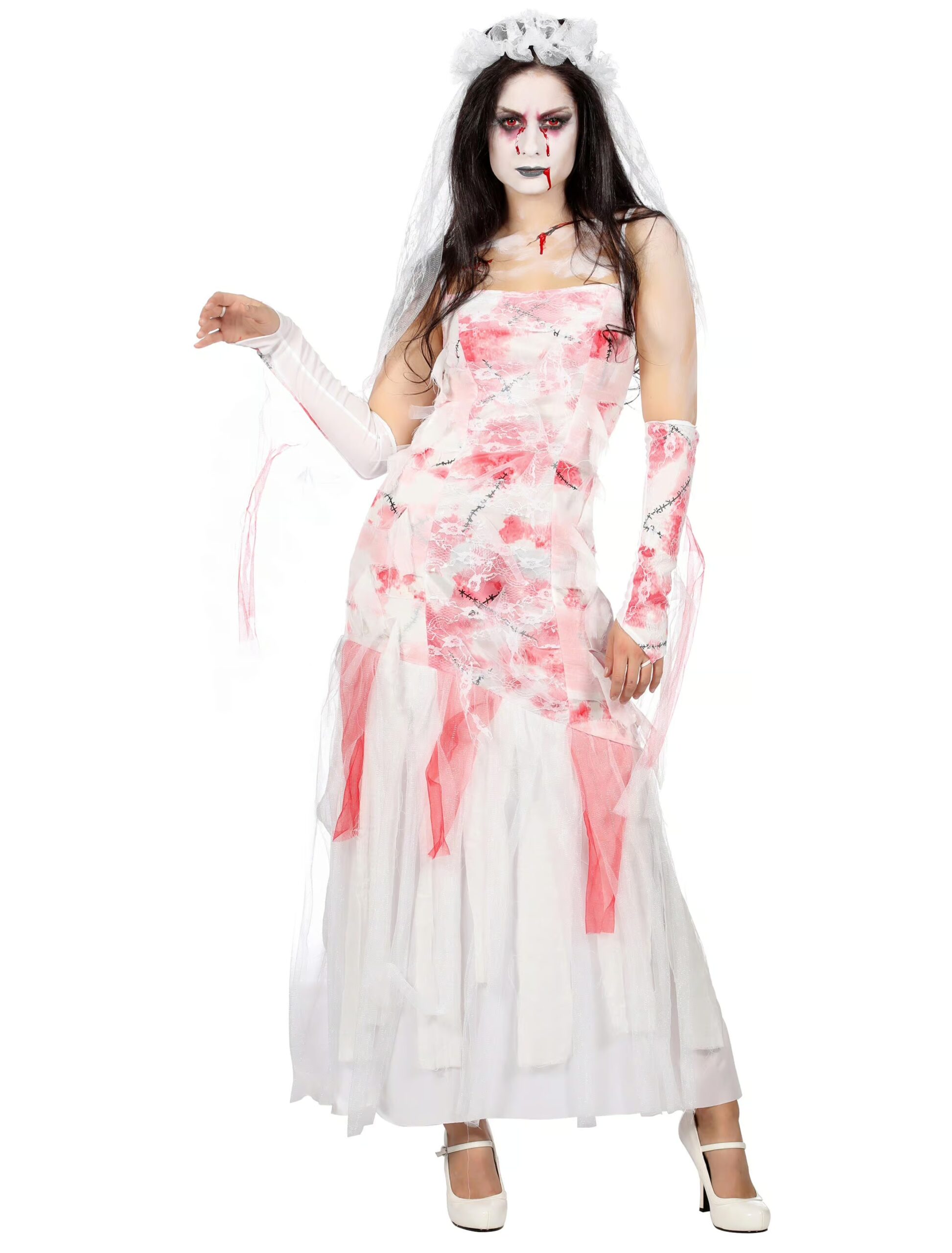 Das ist wohl am Tag der Trauung etwas schief gelaufen… Mit diesem coolen Braut Outfit für Halloween kannst Du Dich an jedem Bräutigam rächen, der Dich einmal vor dem Traualtar stehen gelassen hat. Das Set besteht aus einem weißen Kleid, Armstulpen und einem Diadem. In vielen Größen kannst Du dieses Halloween Kostüm bei uns abstauben, das jedem einen Schauer über den Rücken laufen lässt. Angereichert mit Blut und Narben ist das Kleid auf jeder Halloween Party ein absoluter Hingucker und erobert sogar das kalte Herz von Frankenstein. Mit der passenden Schminke findest Du garantiert einen neuen Bräutigam auf dem Friedhof.
