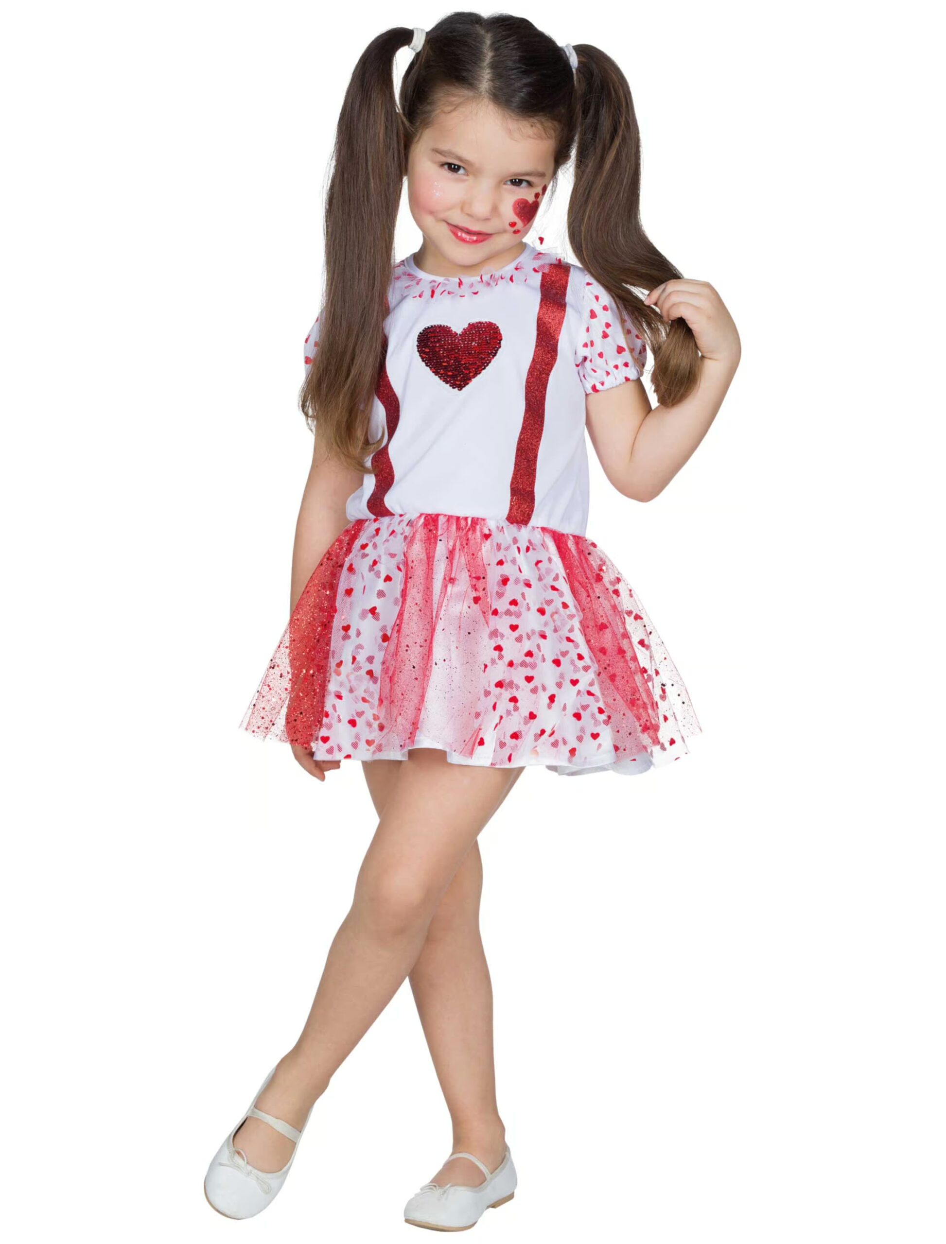 Das süße weiße Kleid mit außergewöhnlichem Rock im Petticoat Stil verzaubert nicht nur die Großen, sondern auch die ganz Kleinen durch die vielen Pailletten, dem glitzernden Tüllrock und den rot-glitzernden Streifen. Zusätzlich ist ein weißer Tüllkragen am Hals angebracht auf dem kleine rote Herzchen sind. Auf den kurzen Ärmeln befindet sich ebenfalls das rote Herzchen Muster, dass sich auch auf dem Tüllrock widerspiegelt. Ein großes rotes Pailletten Herz ist mittig auf dem süßen Oberteil angebracht. Weitere verspielte Accessoires findest Du in unserem Shop.