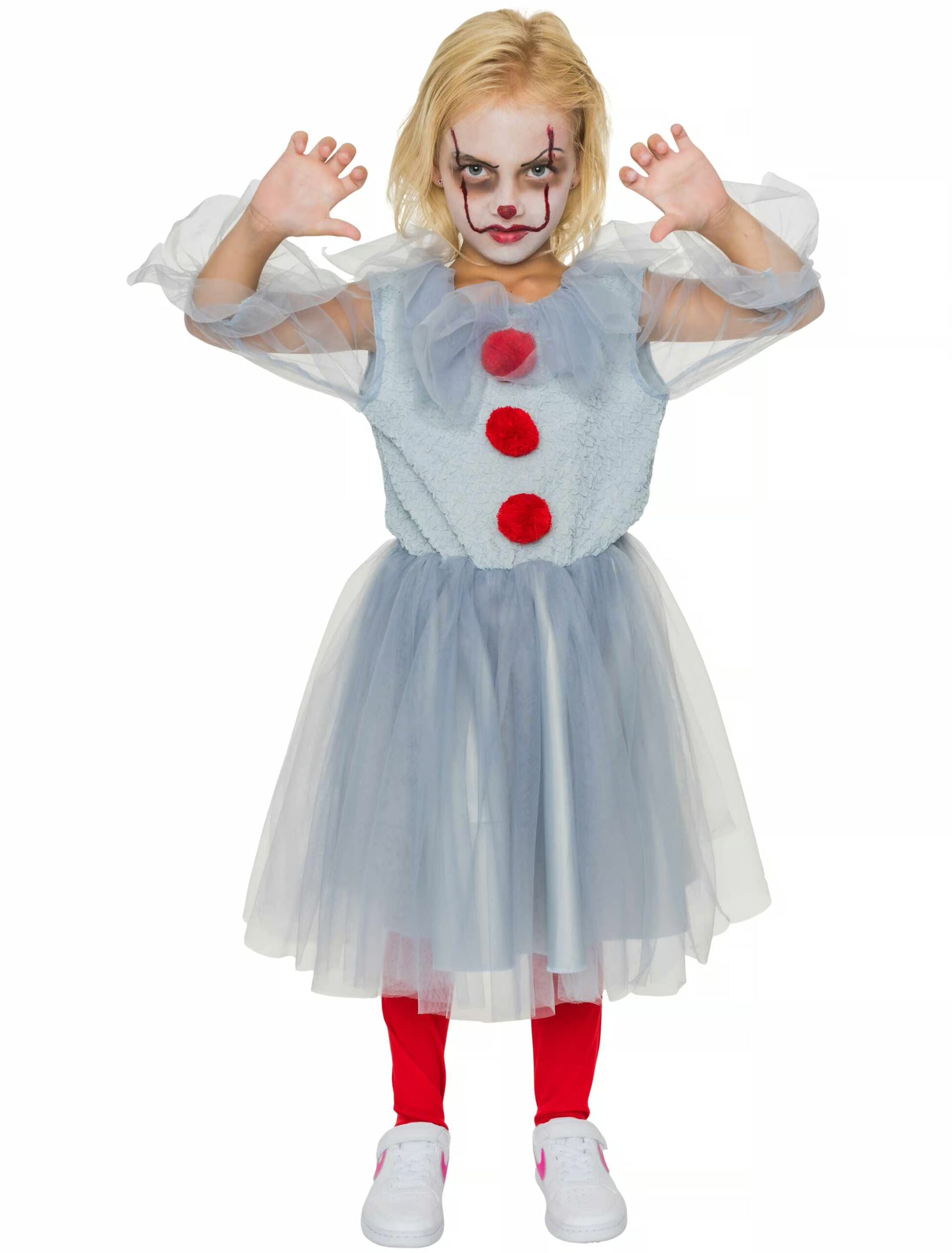 Achtung, jetzt wird’s gruselig – und gleichzeitig richtig cool! Mit unserem Horrorclown Kleid wirst du garantiert für jede Menge Schreck und Spaß sorgen! Bist du bereit, als der gruseligste Clown auf der nächsten Party zu erscheinen? Das Kleid ist eine perfekte Mischung aus einem Horror Clown-Look und frech-süßem Design. Gruselig, fröhlich und einfach ein Hingucker – das perfekte Outfit für kleine Clowns!
