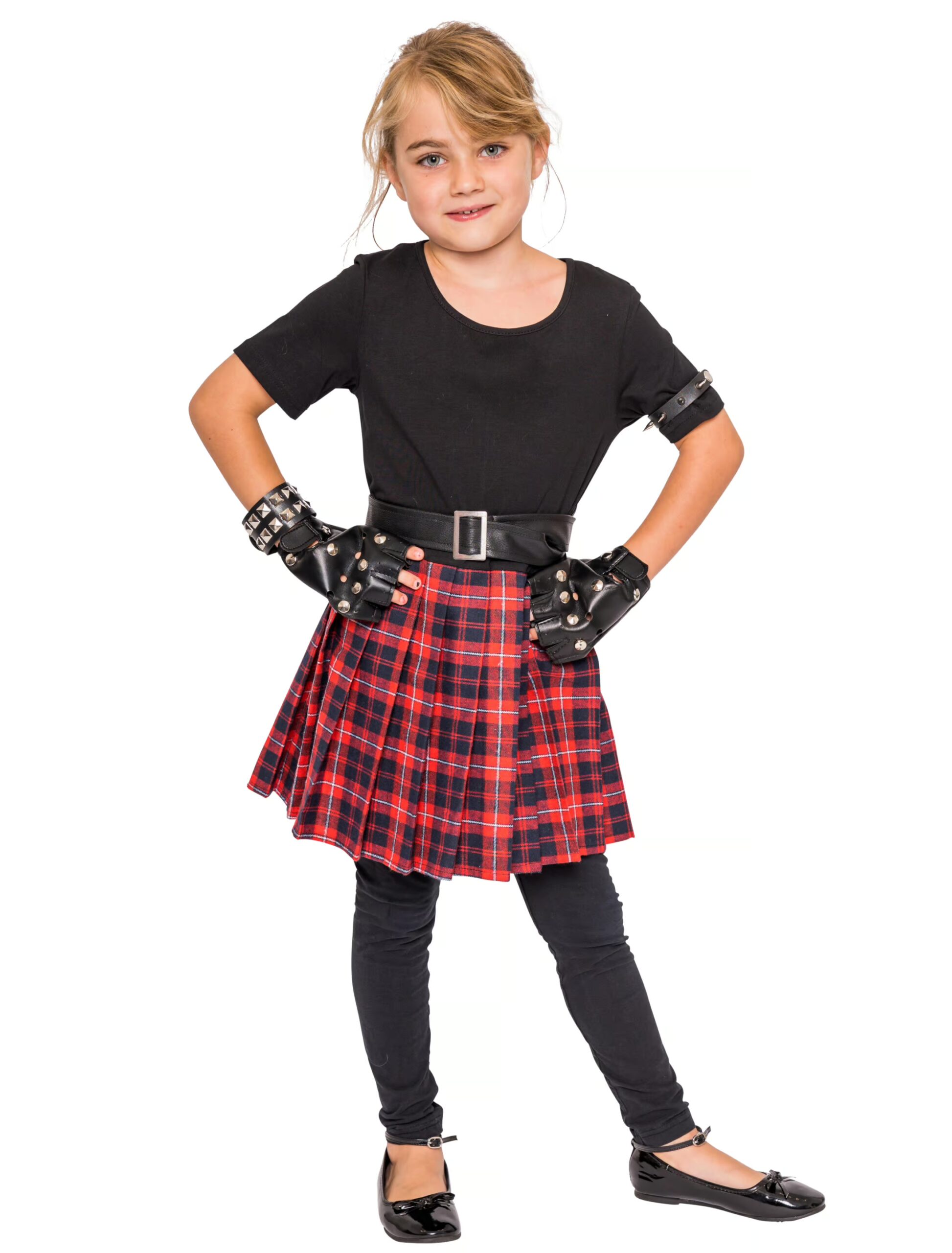 Dieses interessante Kinderkleid, bestehend aus dem knielangen Faltenrock aus Polyester mit schwarz-weiß-roten Webkaros und dem schwarzen, kurzärmligen Shirtoberteil mit Rundhalsausschnitt aus Baumwolle und Elasthan, bietet Dir viele Möglichkeiten zusammen mit Deinem kleinen Schatz das individuelle Wunschkostüm zu kreieren. Vielleicht möchte Deine Kleine an einem Tag eine bezaubernde Schottin sein und am anderen eine angesagte Rockerbraut und Motorrad Lady darstellen, die mit ihren Freunden das Faschingstreiben unsicher macht. Mit diesem Kostümkleid und den zugehörigen Accessoires aus unserem Shop gelingt die Verwandlung perfekt und Deine Süße wird garantiert viel Spaß mit ihrem Wunschoutfit haben.