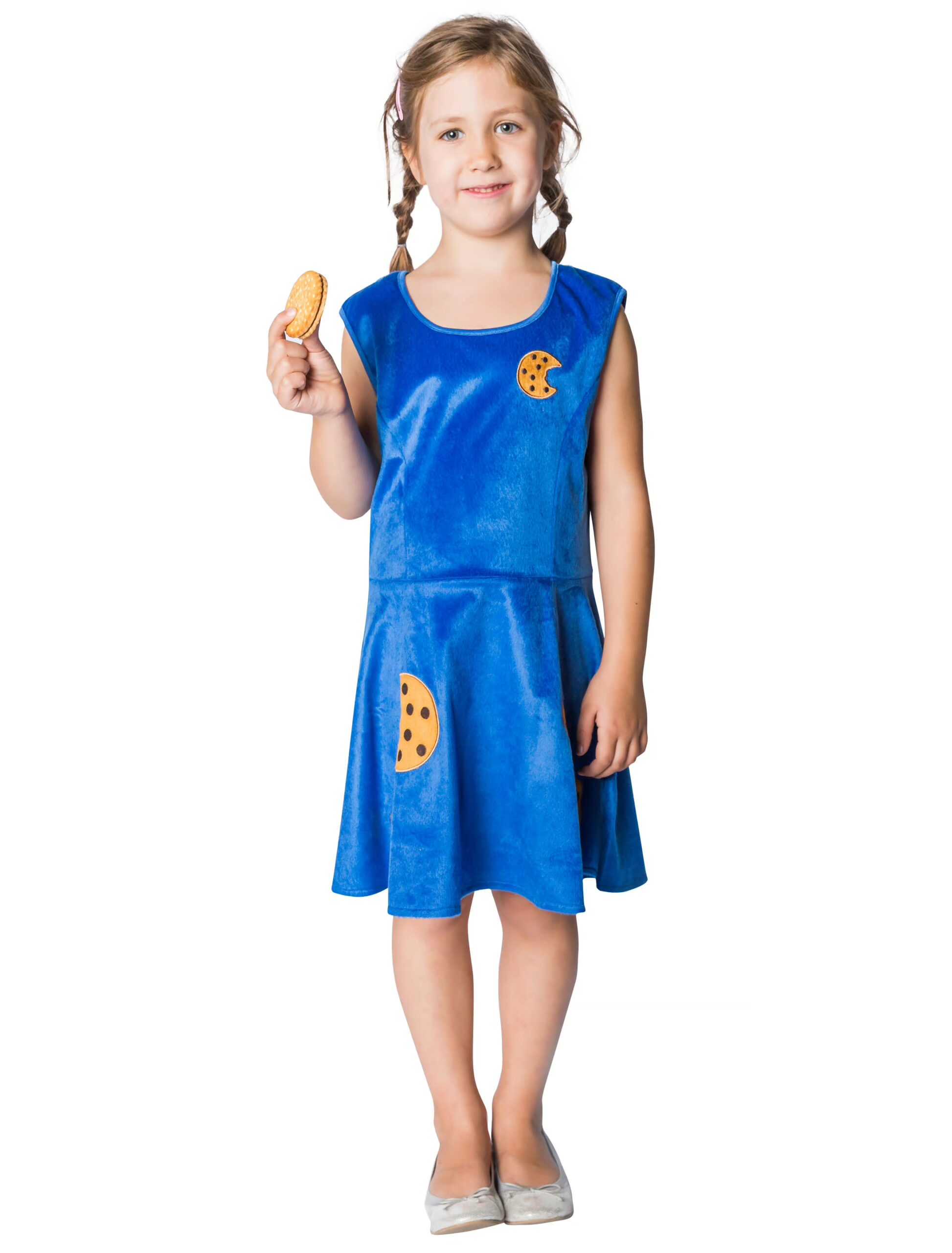 Zuckerschock! Wir müssen Dich warnen, denn mit diesem Krümelchen Kostüm für Kinder siehst Du einfach zum Anbeißen aus! Das liegt nicht nur an den vielen Keksen/Cookies, die sich auf dem strahlend-blauen Kleid befinden, sondern auch an dem figurbetonten und kurzen Schnitt. Auf der Rückseite befinden sich ebenfalls Kekse. Durch den Reißverschluss am Rückem lässt sich das süße Keksmonster Kleid bequem schließen. Nach Dir wird jeder verrückt sein!